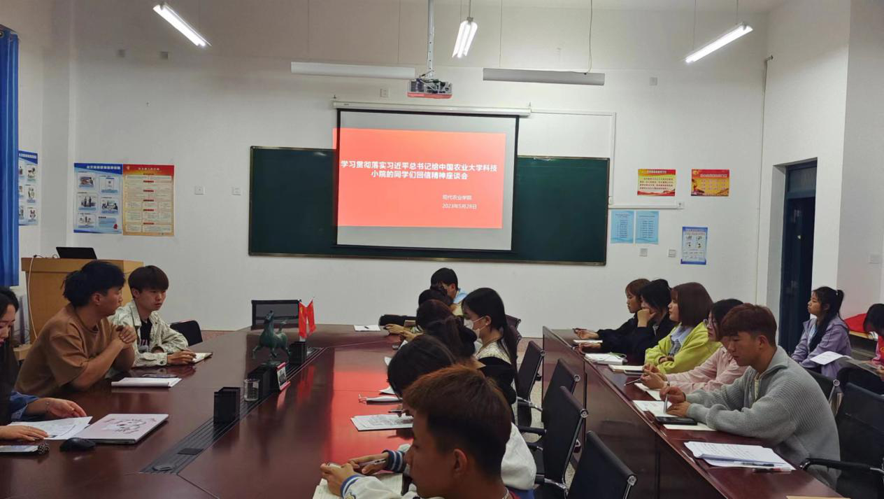 5月28日,現(xiàn)代農(nóng)業(yè)學院團委舉辦學習習近平總書記給中國農(nóng)業(yè)大學科技小院同學們的回信精神學習座談會,共青團干部、青年師生代表參加學習研討。