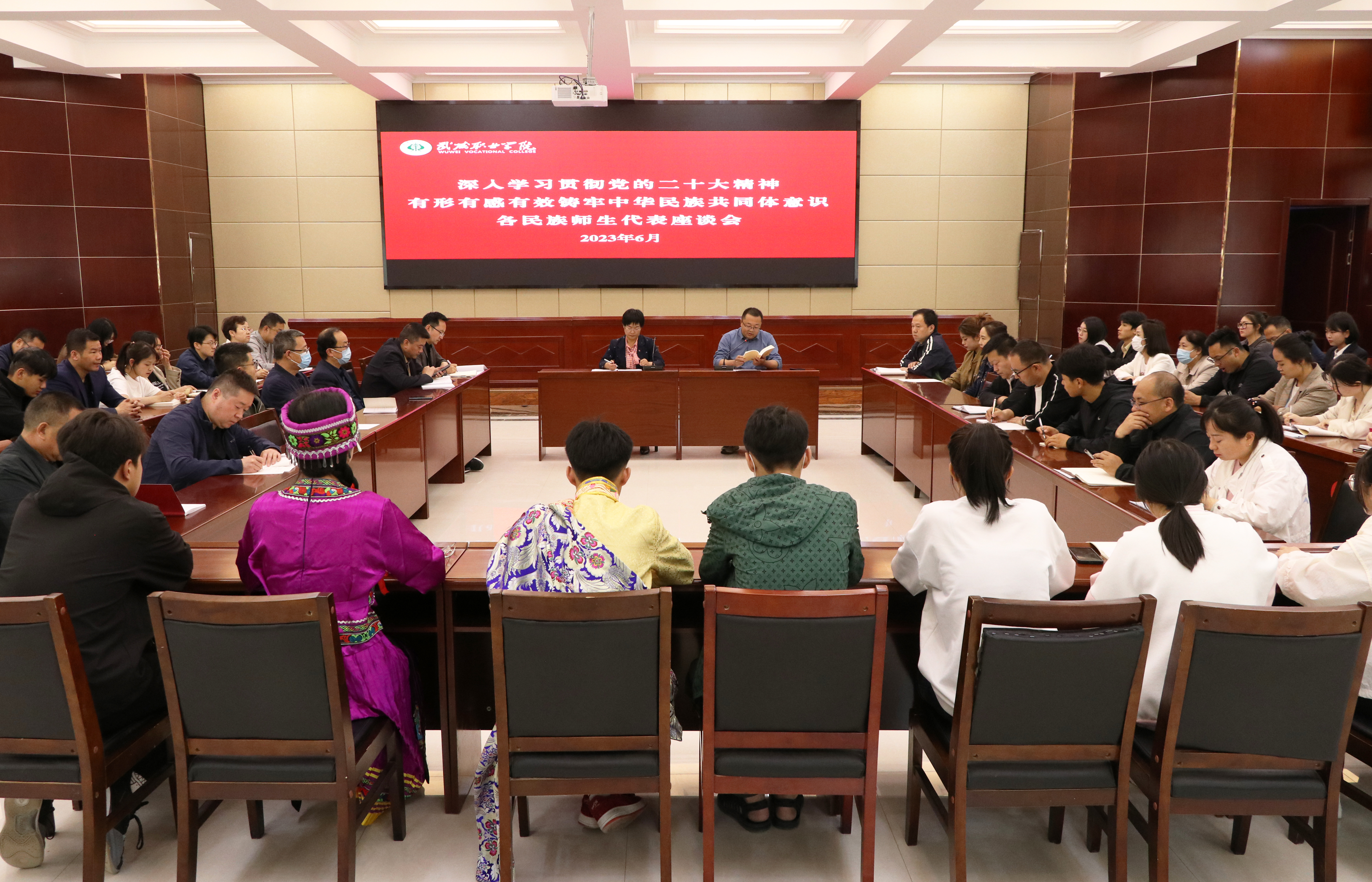 6月2日,學校召開以“學習貫徹黨的二十大精神? 有形有感有效鑄牢中華民族共同體意識”為主題的各民族師生代表座談會,學校漢族、藏族、回族、土族、滿族、苗族等13個民族師生代表60多人參加了座談會。學校黨委委員、副校長何毅出席會議并講話,座談會由宣傳統(tǒng)戰(zhàn)部負責人魏全民主持。
