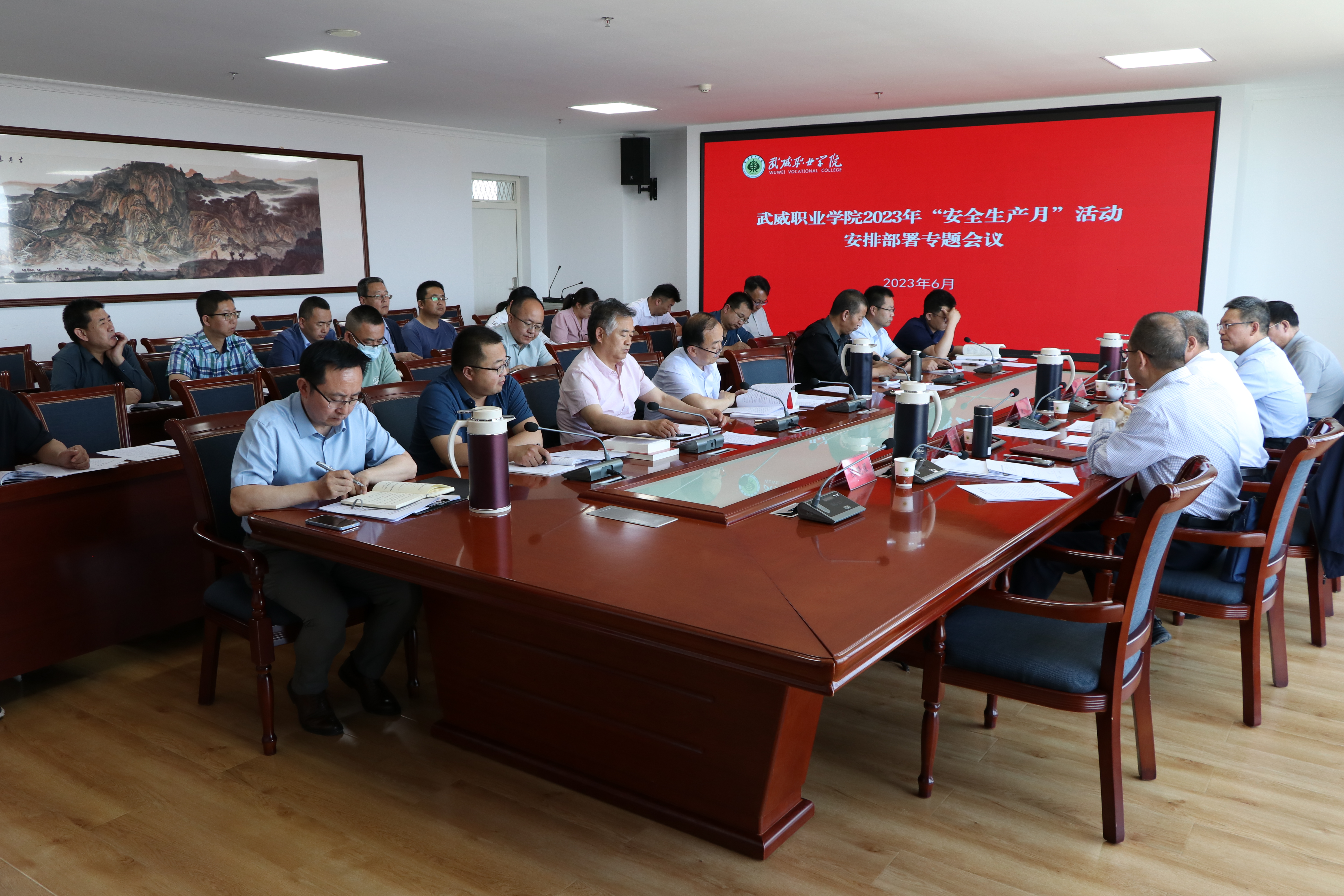 會議傳達(dá)學(xué)習(xí)了省教育廳《關(guān)于開展2023年教育系統(tǒng)“安全生產(chǎn)月”活動(dòng)的通知》精神,并審定通過了《武威職業(yè)學(xué)院2023年“安全生產(chǎn)月”活動(dòng)實(shí)施方案》。