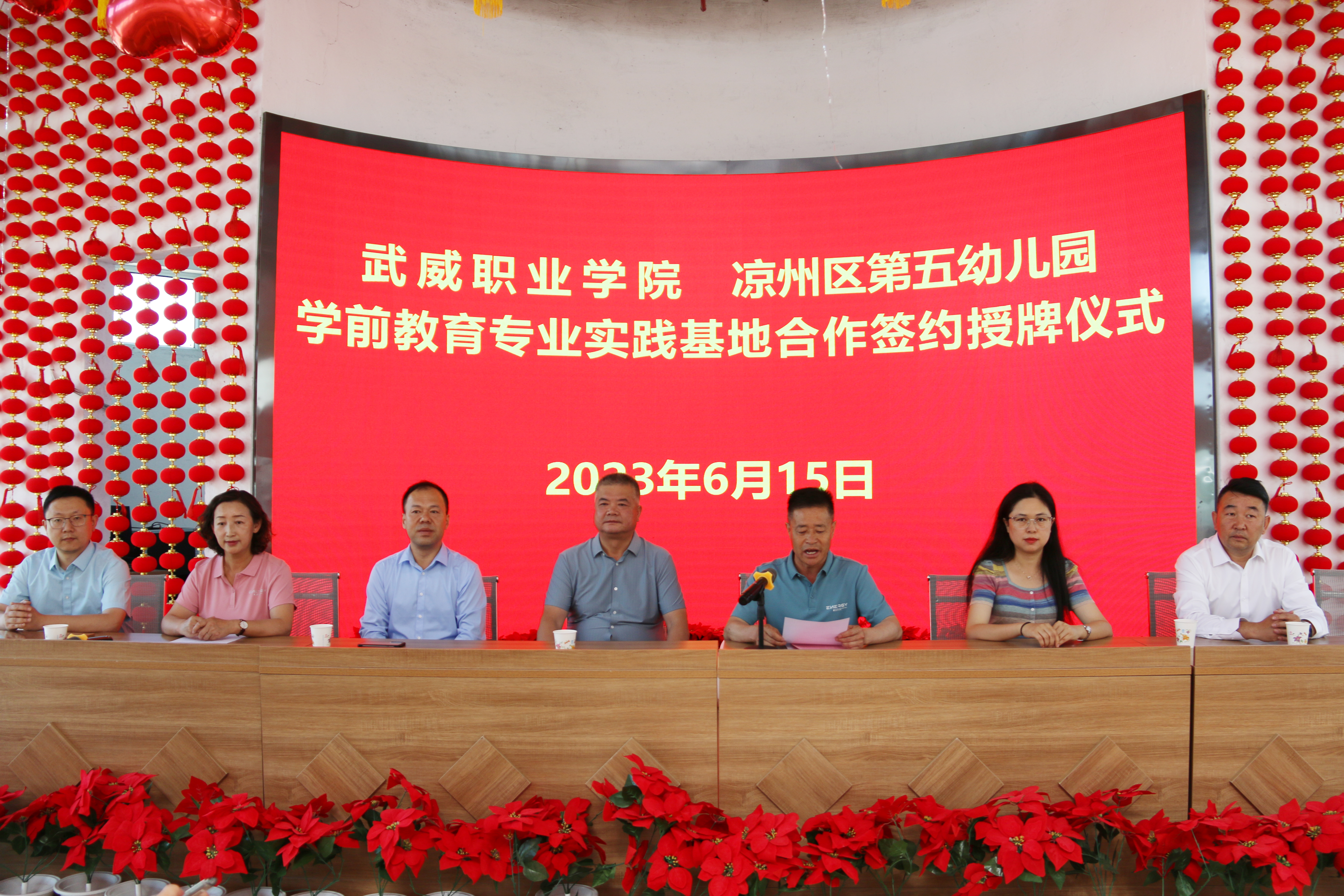 6月15日,武威職業(yè)學(xué)院學(xué)前教育專(zhuān)業(yè)實(shí)踐基地授牌儀式分別在武威市第二實(shí)驗(yàn)幼兒園、涼州區(qū)第五幼兒園舉行。學(xué)校黨委委員、副校長(zhǎng)王守云,武威市第二實(shí)驗(yàn)幼兒園園長(zhǎng)羅亞莉,涼州區(qū)第五幼兒園園長(zhǎng)張俊山出席授牌儀式。藝術(shù)與教育學(xué)院教師代表,市區(qū)幼兒園領(lǐng)導(dǎo)班子成員及部分教師參加授牌儀式。