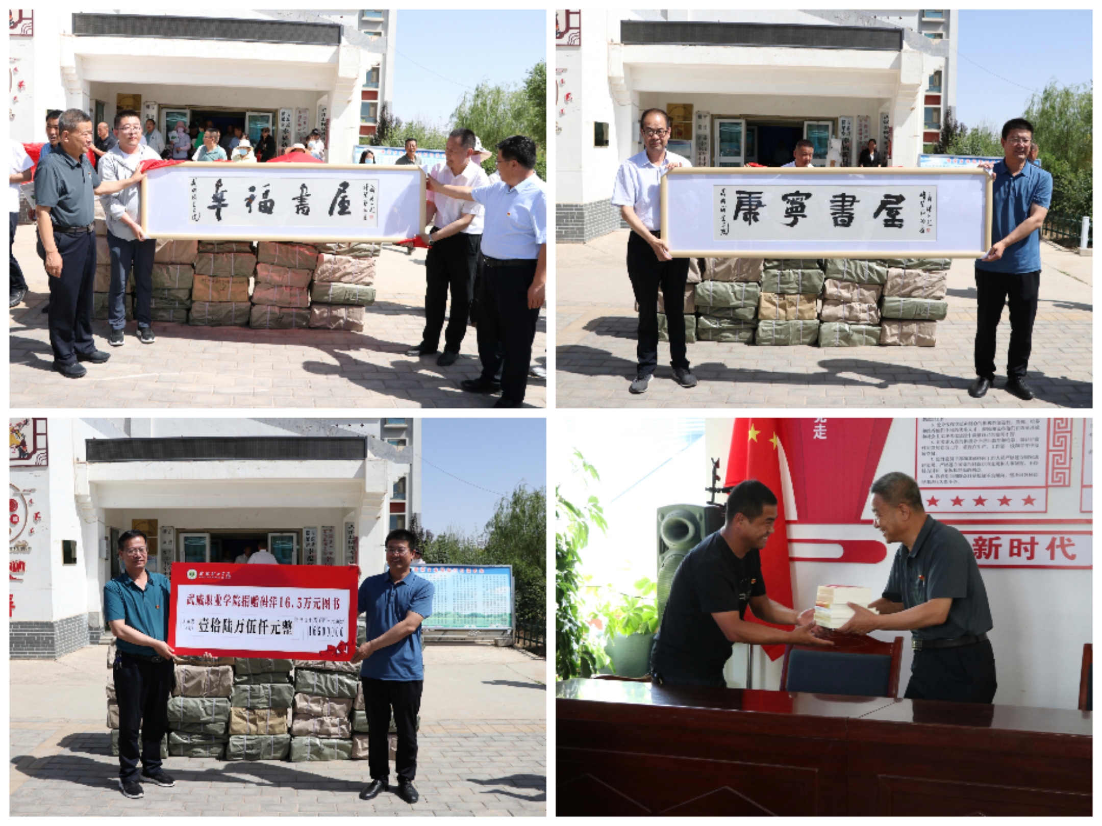 趙明、何文國(guó)就文化振興項(xiàng)目進(jìn)行了深入交流,簽訂了《定向幫扶捐贈(zèng)協(xié)議》《武威職業(yè)學(xué)院在橫梁鄉(xiāng)幸福新村、康寧新村捐建開(kāi)放式農(nóng)家書屋的協(xié)議書》,雙方代表為幸福書屋、康寧書屋揭牌,學(xué)校為橫梁鄉(xiāng)捐贈(zèng)文化振興專項(xiàng)資金13萬(wàn)元和碼洋16.5萬(wàn)元的圖書。