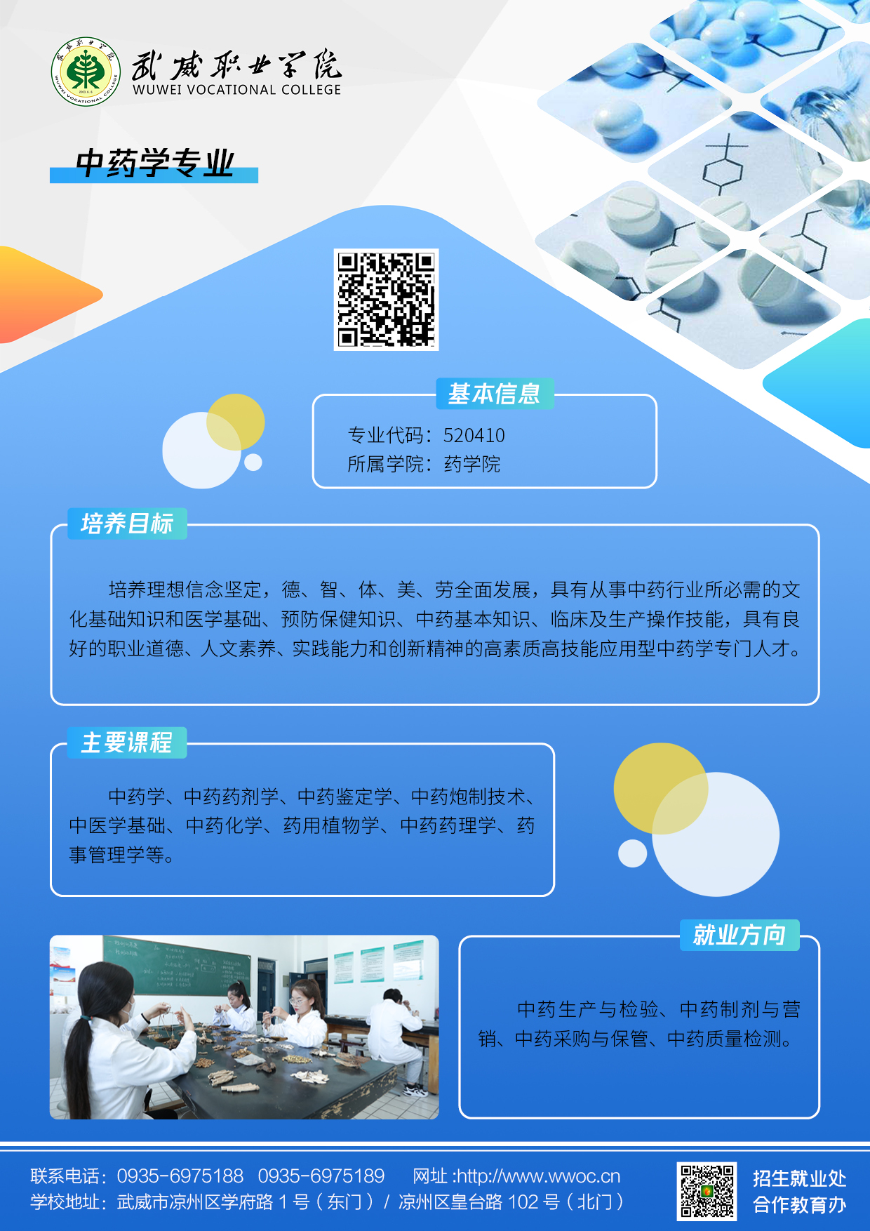 武威職業(yè)學院二級學院專業(yè)簡介丨藥學院