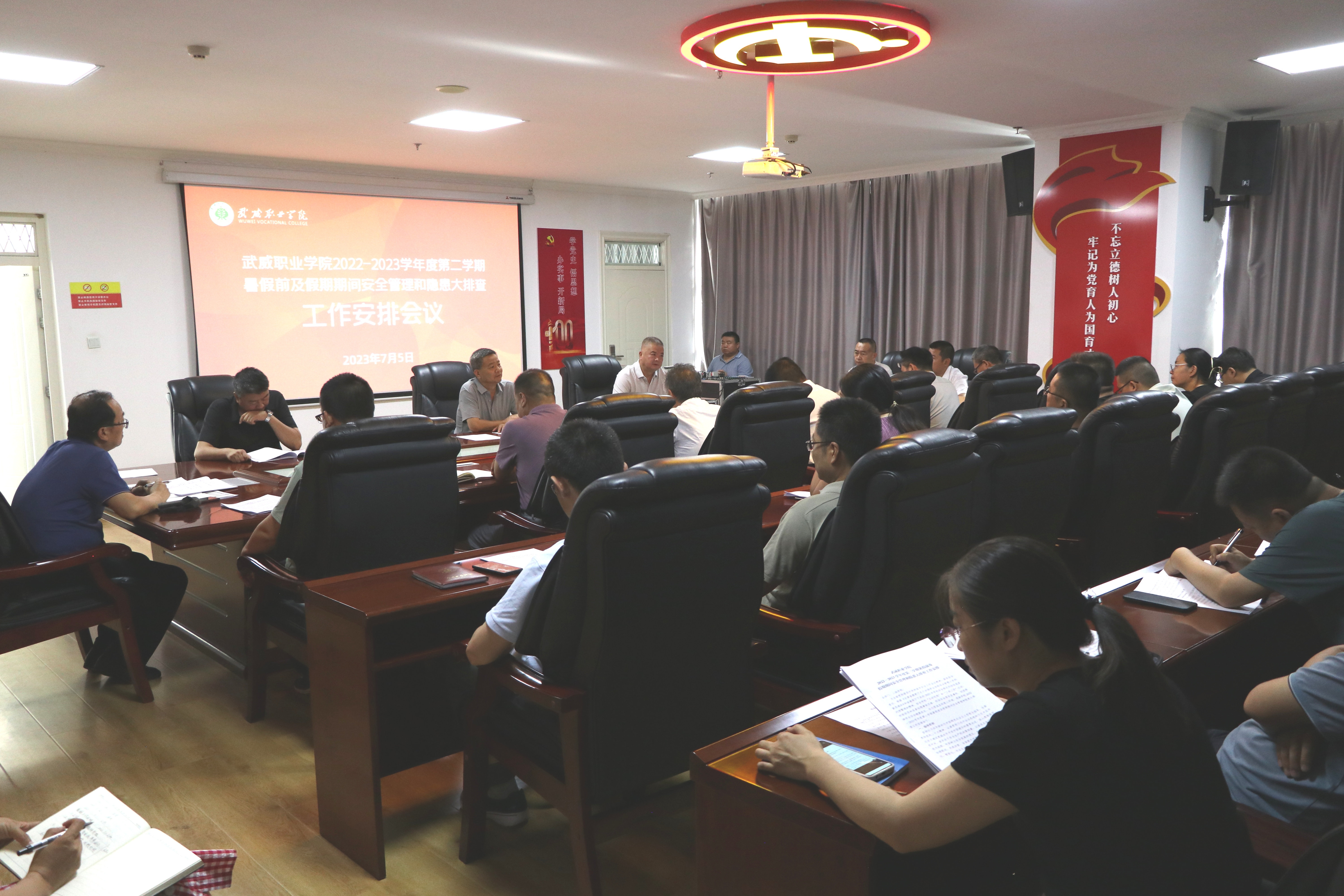 王守云傳達了《甘肅省教育廳關(guān)于加強職業(yè)學(xué)校安全管理工作的緊急通知》精神。分析研判了學(xué)校當(dāng)前學(xué)生安全教育管理面臨的形勢,并安排部署了武威職業(yè)學(xué)院2022至2023學(xué)年第二學(xué)期暑假前及暑假期間安全管理及安全隱患大排查工作。