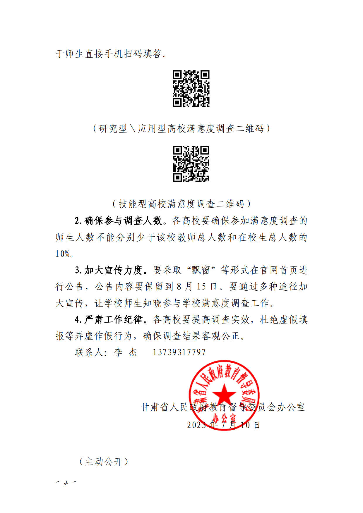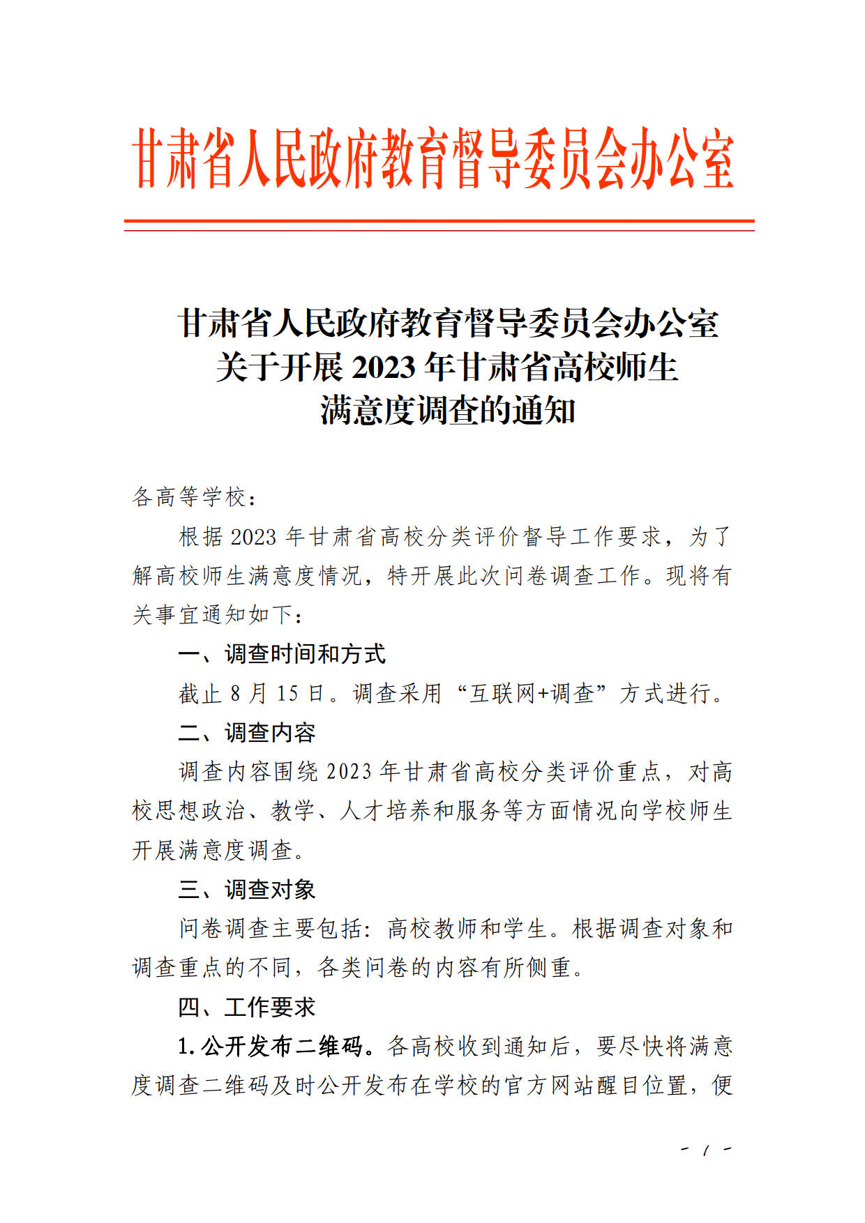 甘肅省人民政府教育督導(dǎo)委員會(huì)辦公室關(guān)于開展 2023年甘肅省高校師生滿意度調(diào)查的通知