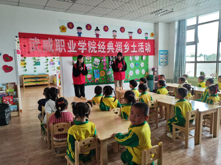 學(xué)校組織推普志愿團(tuán)隊(duì)學(xué)生赴古浪綠洲小鎮(zhèn)第一幼兒園開展了經(jīng)典浸潤(rùn)?quán)l(xiāng)土特色幫扶活動(dòng),以經(jīng)典詩(shī)文、兒歌、紅歌等語言小游戲和幼兒進(jìn)行了互動(dòng),并發(fā)放文具等禮品,激發(fā)了小朋友同講普通話的興趣。