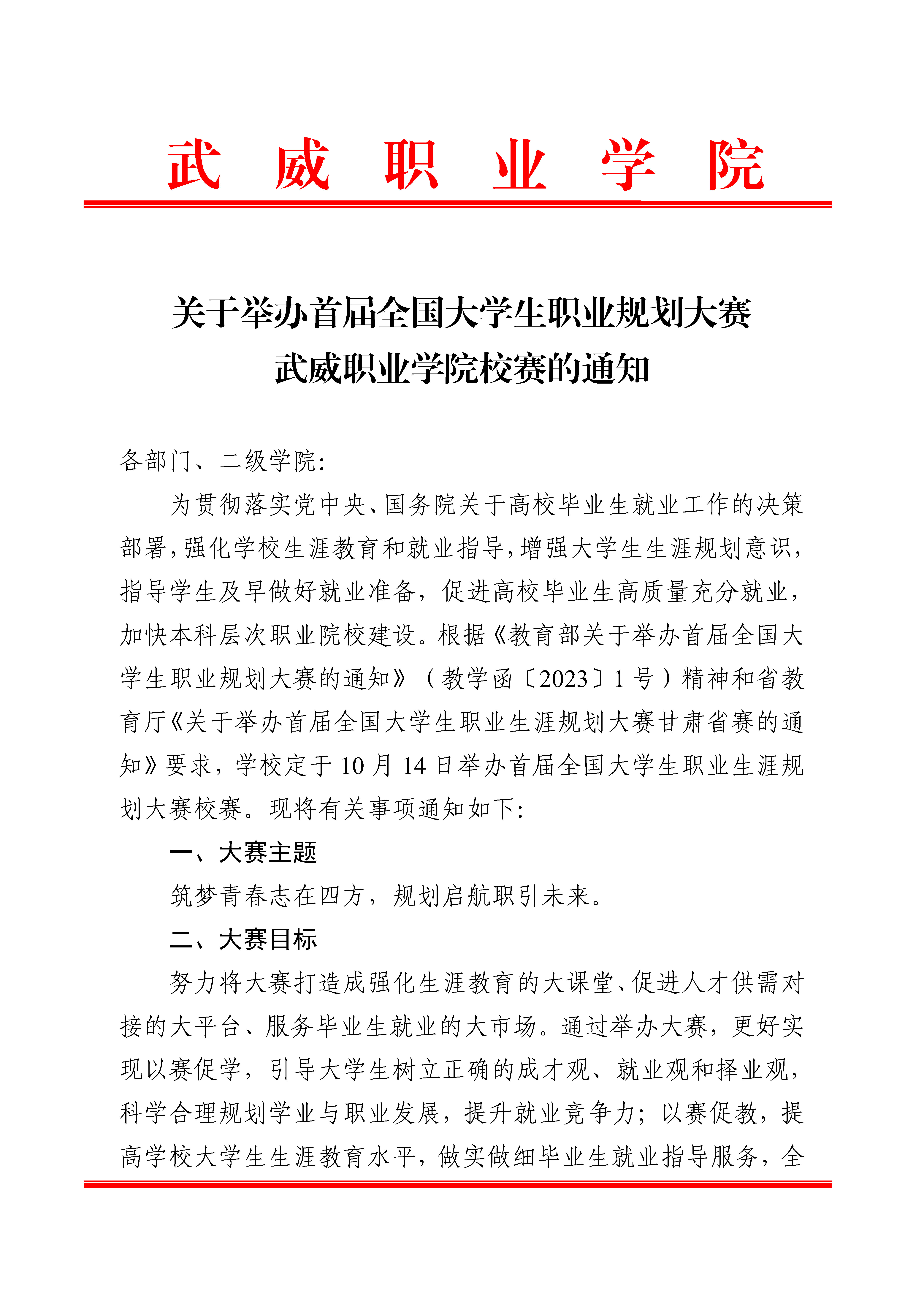 關(guān)于舉辦首屆全國大學(xué)生職業(yè)規(guī)劃大賽 武威職業(yè)學(xué)…
