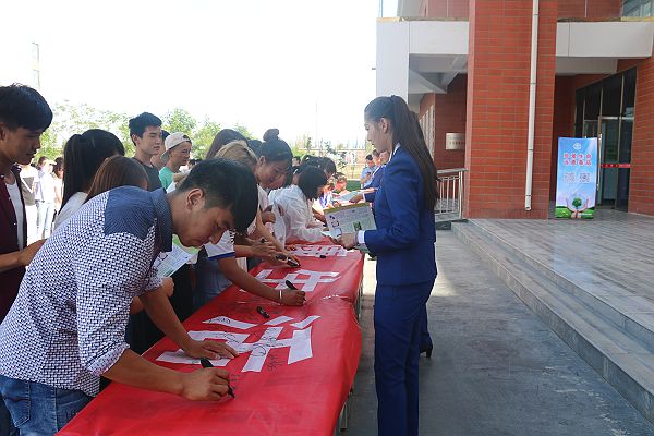 活動中,王主瑞介紹了我國禁毒工作的基本情況和面臨的嚴(yán)峻形勢,強(qiáng)調(diào)了青年毒品預(yù)防的重要性。學(xué)生代表王波波宣讀了禁毒倡議書,青年志愿者發(fā)放禁毒宣傳材料2000余份,在場師生在“青春無毒·健康生活”主題條幅上進(jìn)行承諾簽名并觀看了毒品預(yù)防知識宣傳展板。