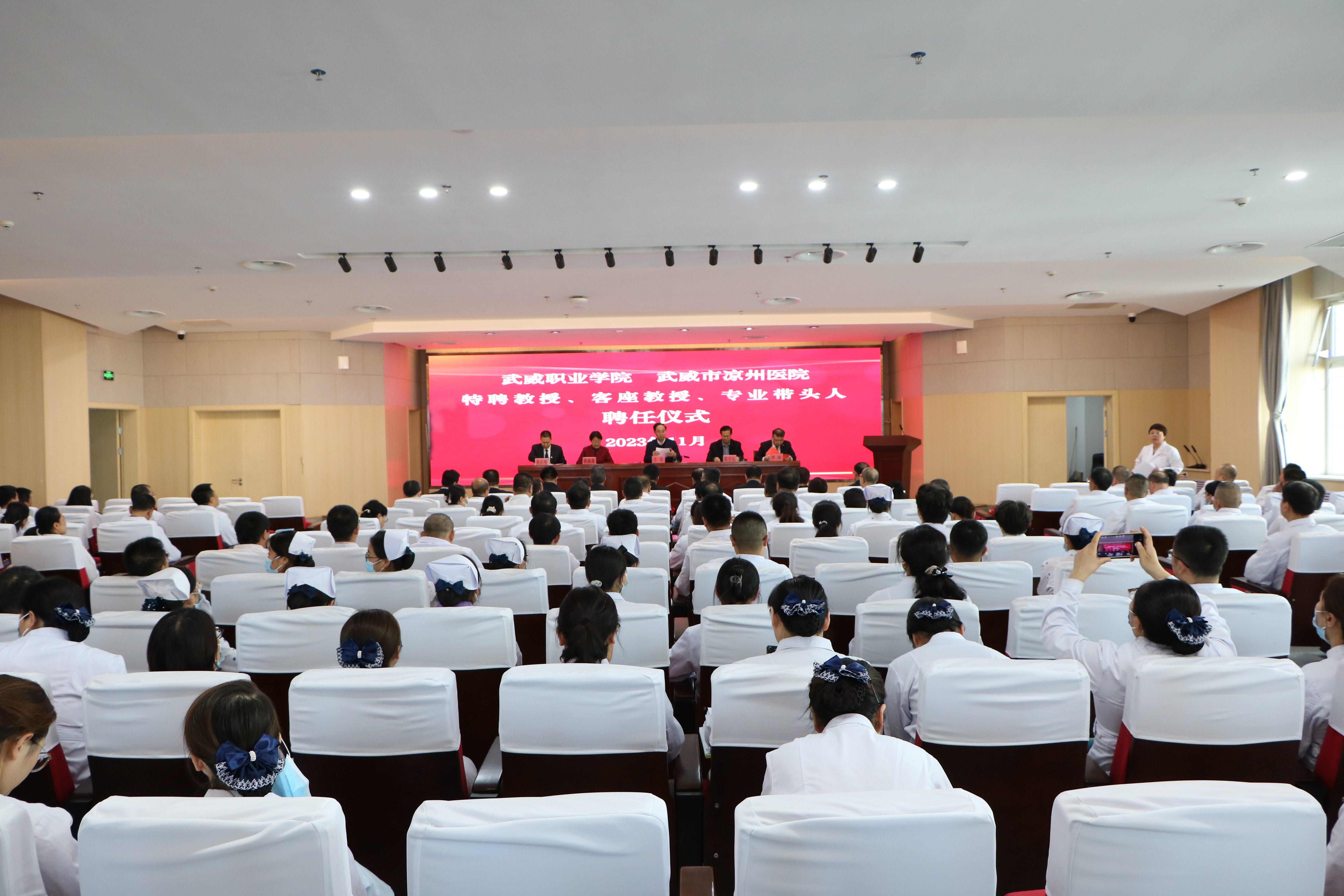 武威職業(yè)學院相關部門、二級學院負責人,涼州醫(yī)院相關部門負責人和醫(yī)護人員代表共320余人參加了聘任儀式。