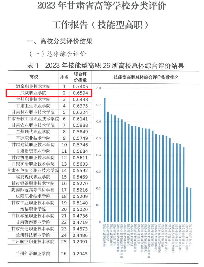 武威職業(yè)學(xué)院2023年高校分類評(píng)價(jià)結(jié)果綜合排名第二