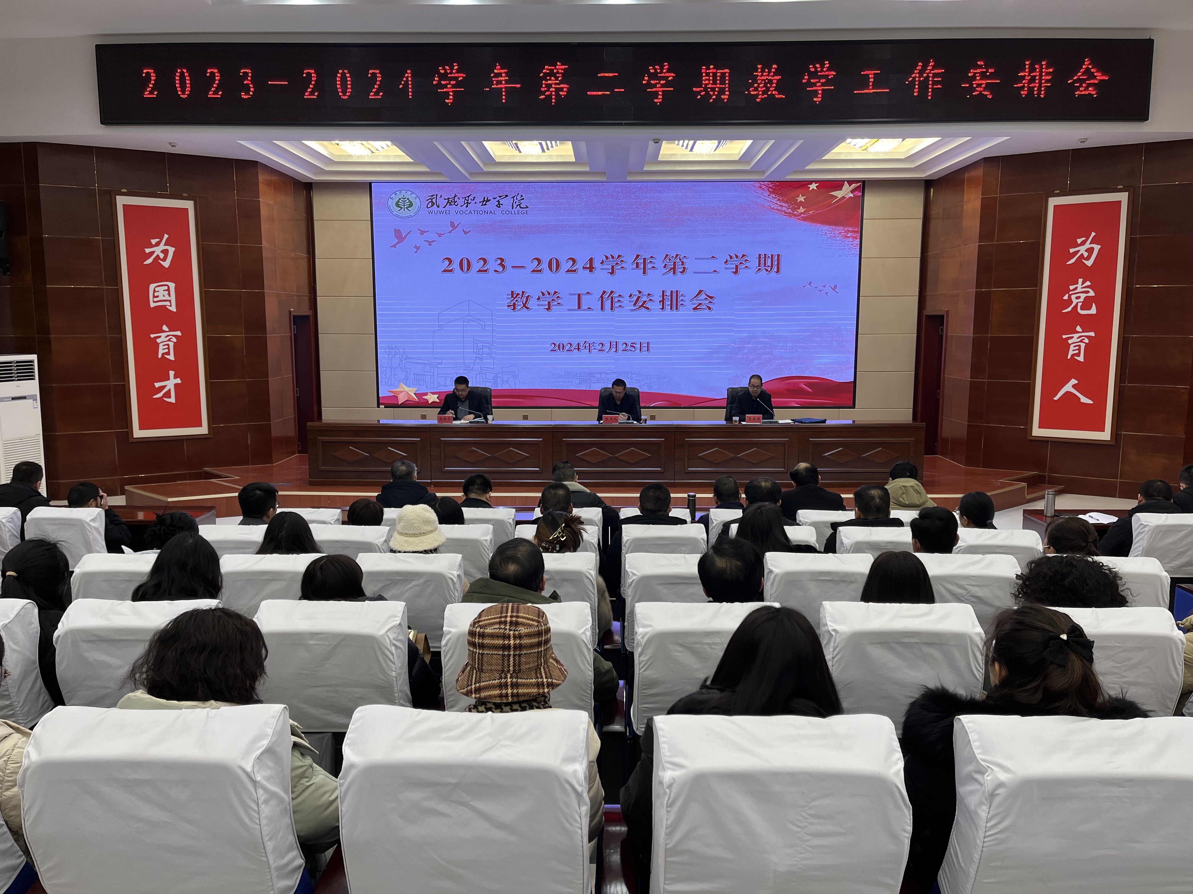 為持續(xù)推動教學(xué)運行與管理規(guī)范化、標準化、科學(xué)化,進一步提升新學(xué)期教學(xué)工作成效和人才培養(yǎng)質(zhì)量,扎實推進學(xué)校高質(zhì)量建設(shè),2月25日上午,學(xué)校在菁英廳組織召開了2023-2024學(xué)年第二學(xué)期教學(xué)工作安排會。學(xué)校校長、黨委副書記張開禮、黨委副書記翟存祥、各二級學(xué)院負責(zé)人、教學(xué)秘書、教研室主任、各專業(yè)帶頭人和教務(wù)處全體工作人員參加了會議。會議由翟存祥主持。