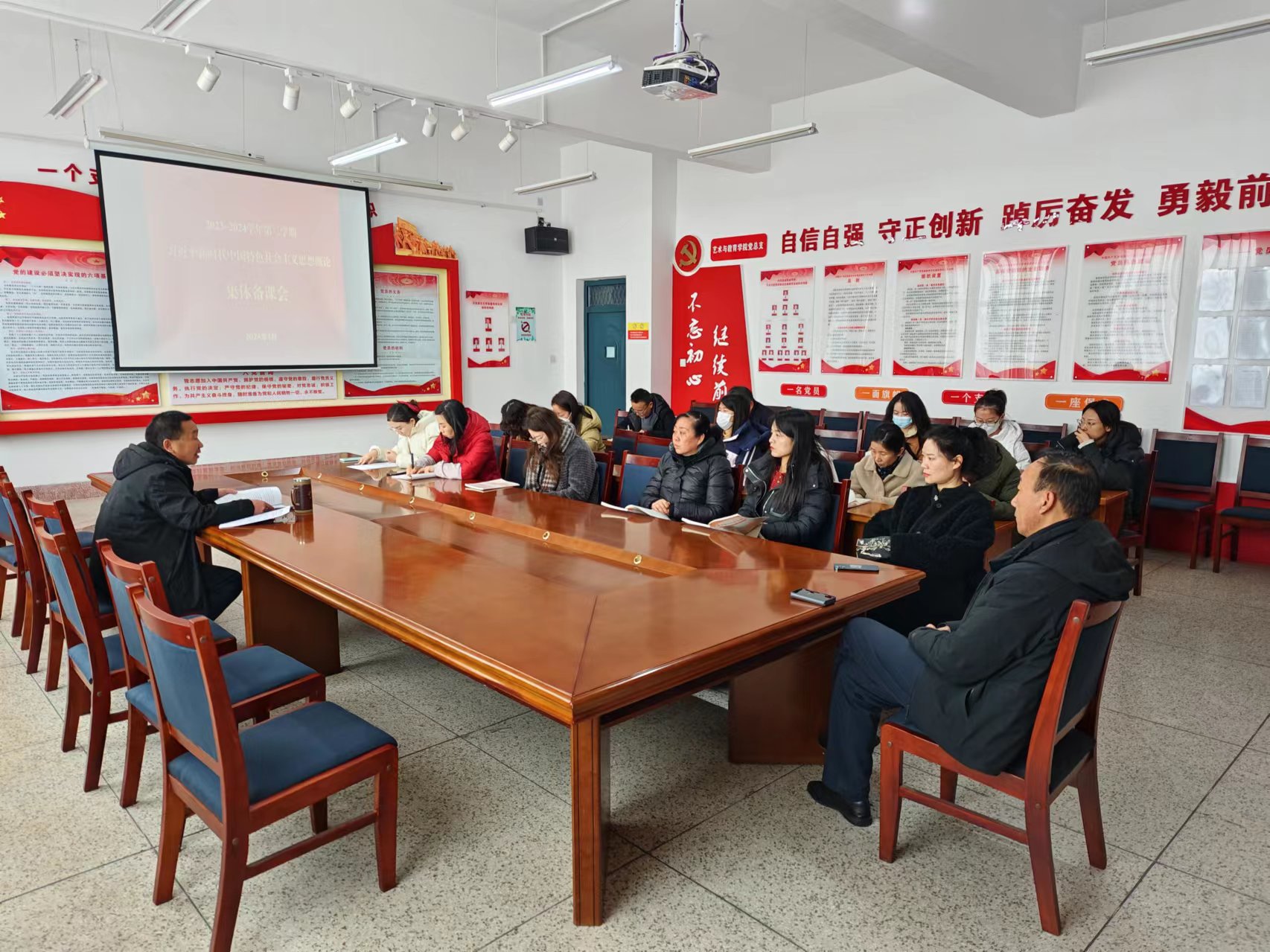 為全面、準確把握《習近平新時代中國特色社會主義思想概論》教材的重點和難點,堅持用黨的創(chuàng)新理論鑄魂育人,推動思政課教學提質增效,3月4日,馬克思主義學院召開《習近平新時代中國特色社會主義思想概論》課程集體備課會。會議由習近平新時代中國特色社會主義思想概論教研室主任魏玲主持,全體教師參加會議。