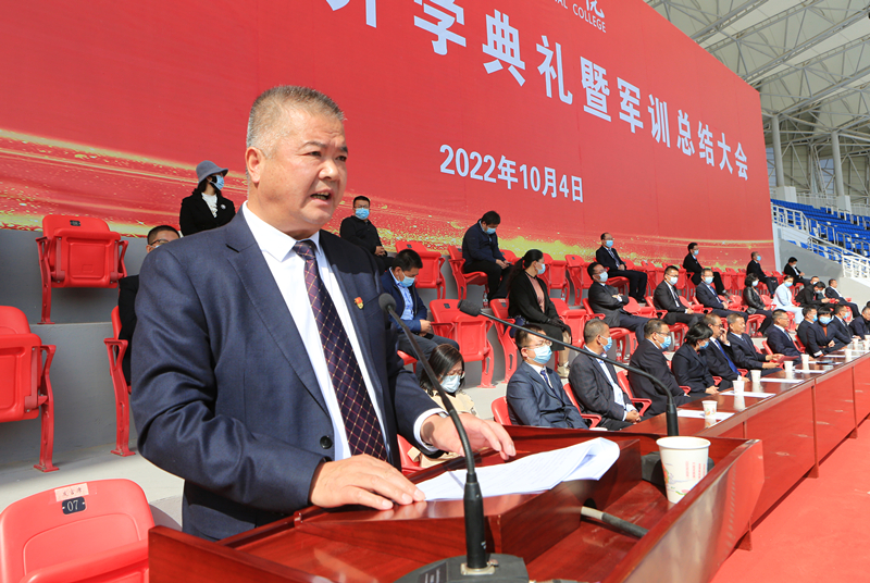 金秋的校園陽光明媚,嘹亮的歌聲唱響青春。10月4日上午9時,在莊嚴(yán)隆重的升國旗儀式結(jié)束后,2022級新生開學(xué)典禮暨軍訓(xùn)總結(jié)大會在體育場拉開了帷幕。學(xué)校黨委書記、校長趙明出席大會并講話,涼州區(qū)人武部上校政委丁俊強(qiáng)受邀出席。校領(lǐng)導(dǎo)翟存祥、王永緒、田迎春、何毅、陳曉煜、張開禮出席大會。大會由學(xué)校黨委委員、副校長王守云主持。