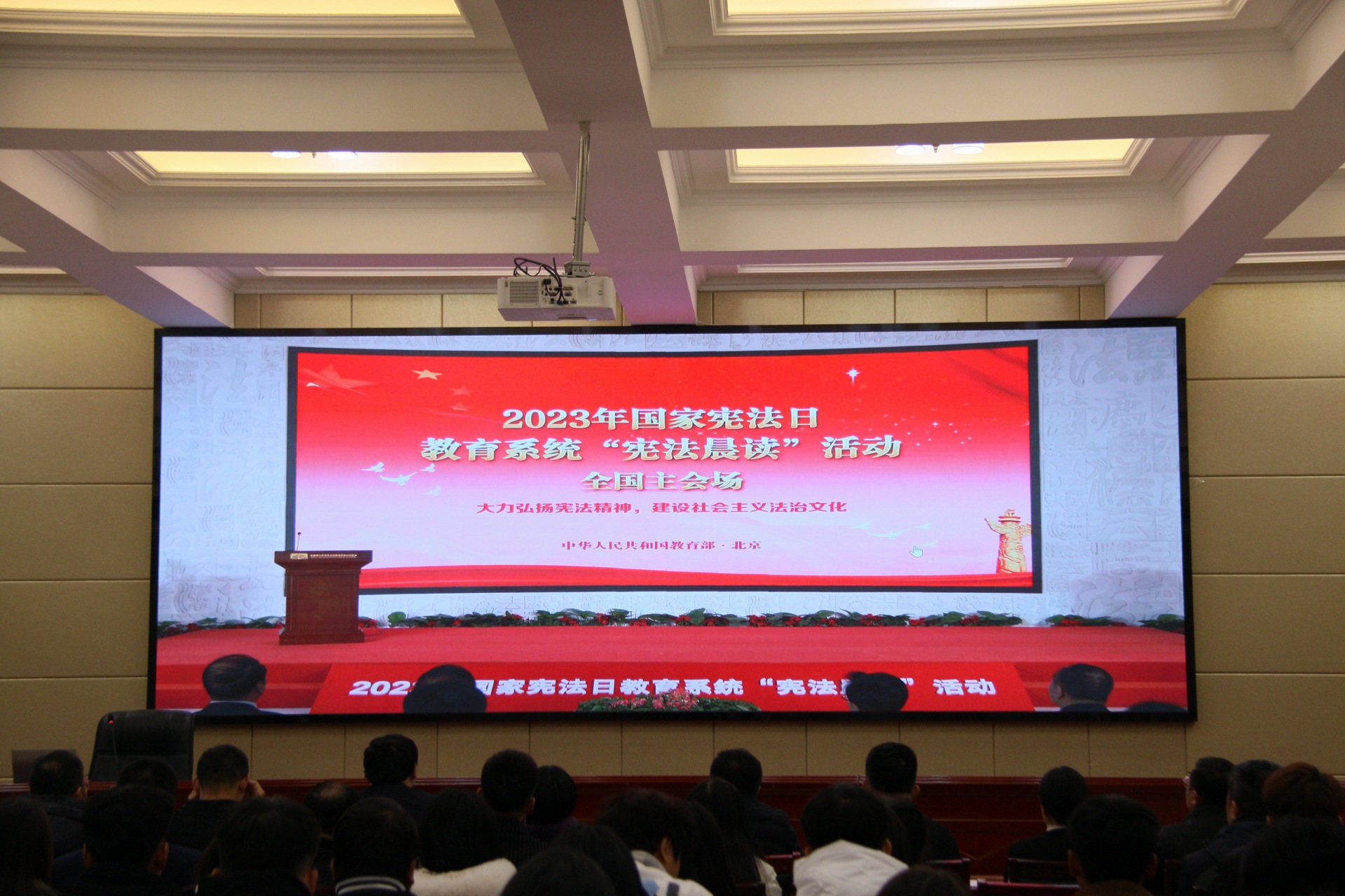 2023年12月4日是第十個國家憲法日,為深入學習貫徹黨的二十大精神,貫徹落實習近平法治思想和習近平總書記關于憲法法治教育的重要指示精神,營造法治校園氛圍,弘揚憲法精神,維護憲法權威,培育學生的憲法意識、國家意識、規(guī)則意識。學校在行樹樓北報告廳開展“大力弘揚憲法精神,建設社會主義法治文化”憲法晨讀活動。黨委委員、副校長何毅參加活動。