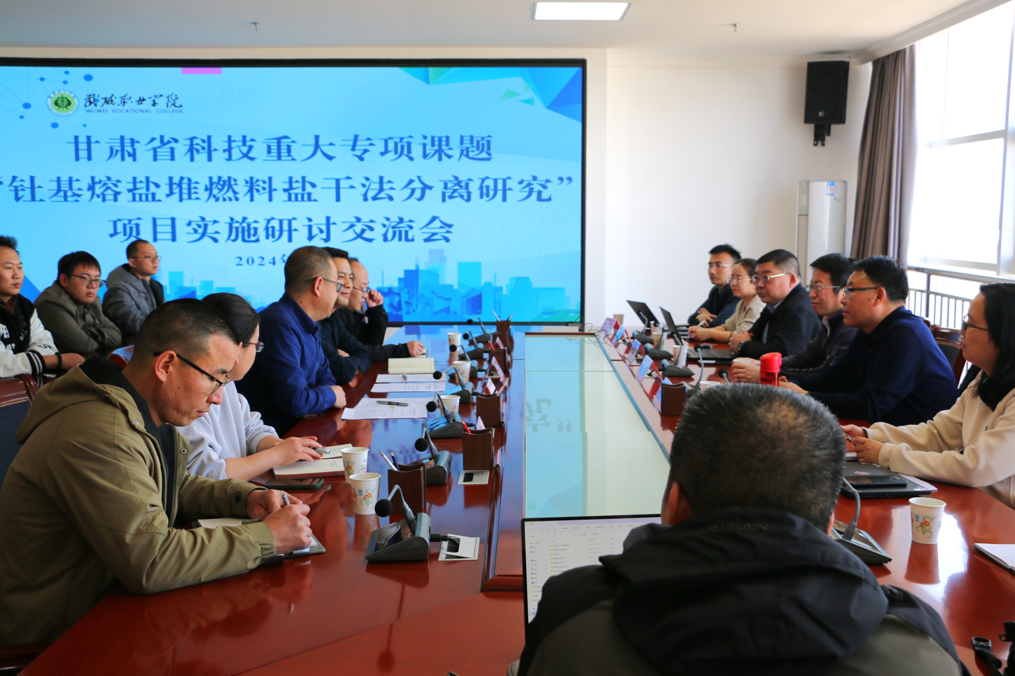 2024311日,甘肅省科技重大專項(xiàng)課題“釷基熔鹽堆燃料鹽干法分離研究”項(xiàng)目實(shí)施研討交流會(huì)在武威職業(yè)學(xué)院能源科技樓811舉行。中科武威新能源研究所主任趙先堂,中國(guó)科學(xué)院上海應(yīng)用物理研究所主任龔昱一行15人,武威職業(yè)學(xué)院黨委副書記翟存祥出席此次會(huì)議。項(xiàng)目骨干、武威職業(yè)學(xué)院教師代表約50人參加此次會(huì)議。會(huì)議由中科低碳新能源技術(shù)學(xué)院副院長(zhǎng)黃述杰主持。