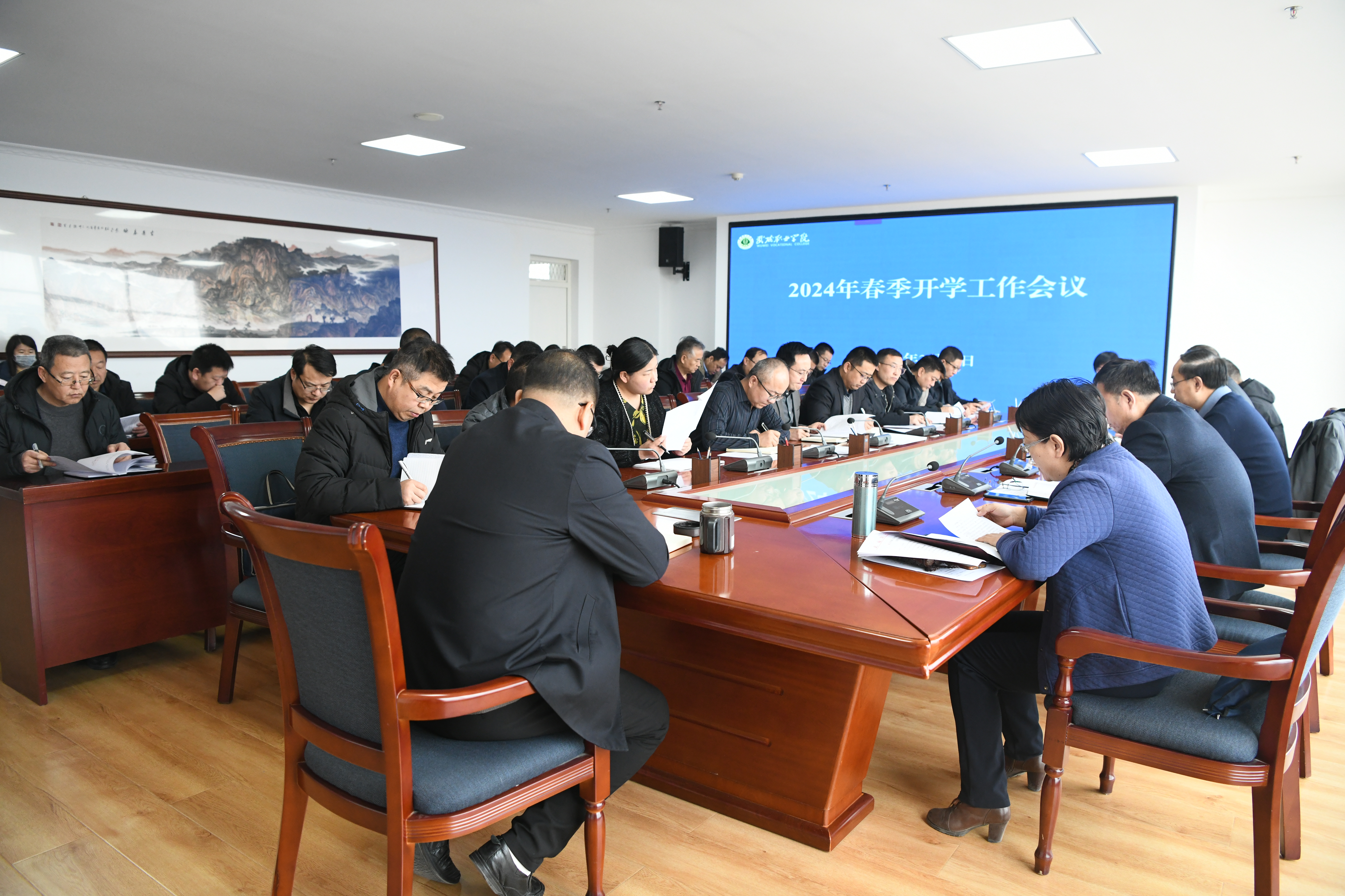 為確保新學期開學平穩(wěn)順利,科學謀劃2024年學校各項工作,2月23日,學校召開2024年春季學期開學工作會議。學校校領導班子成員、各部門和二級學院負責人參加會議,會議由黨委書記王宏主持。