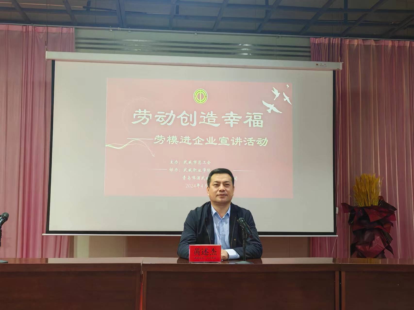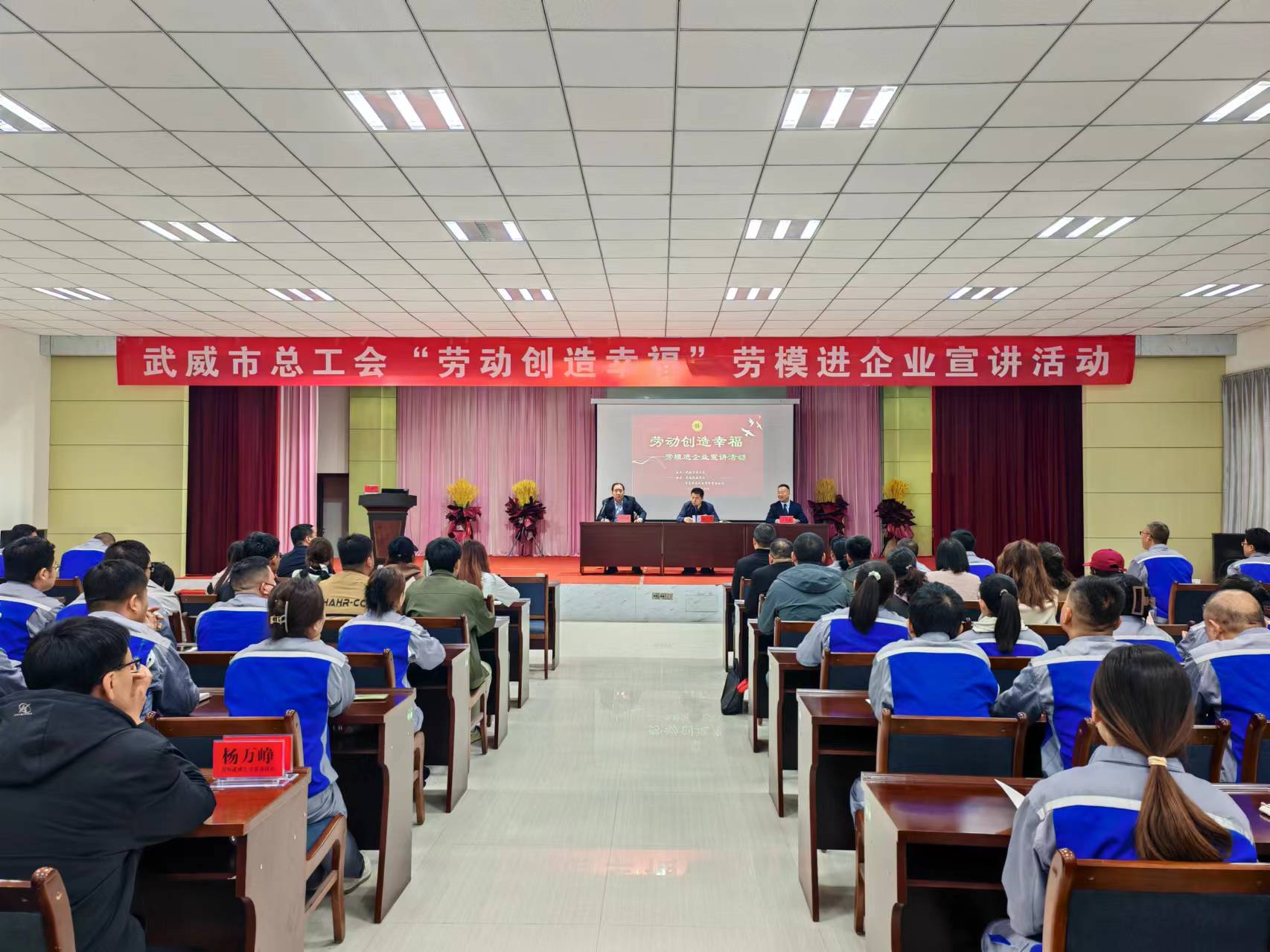 活動邀請武威市五一勞動獎章獲得者、中科低碳新能源技術學院院長黃述杰為現(xiàn)場職工作了一場生動的宣講,他以“勞動創(chuàng)造幸?!睘橹黝},結合自身奮斗經(jīng)歷,運用通俗易懂的語言,圍繞勞模工匠精神的基本內(nèi)涵、基本要求等方面,為大家進行深入淺出地闡述和講解。他的宣講深深感染了在場的每一個人,大家紛紛表示,要以身邊的勞模工匠為榜樣,立足本職崗位,做好本職工作,為推進武威高質(zhì)量發(fā)展貢獻自己的力量。