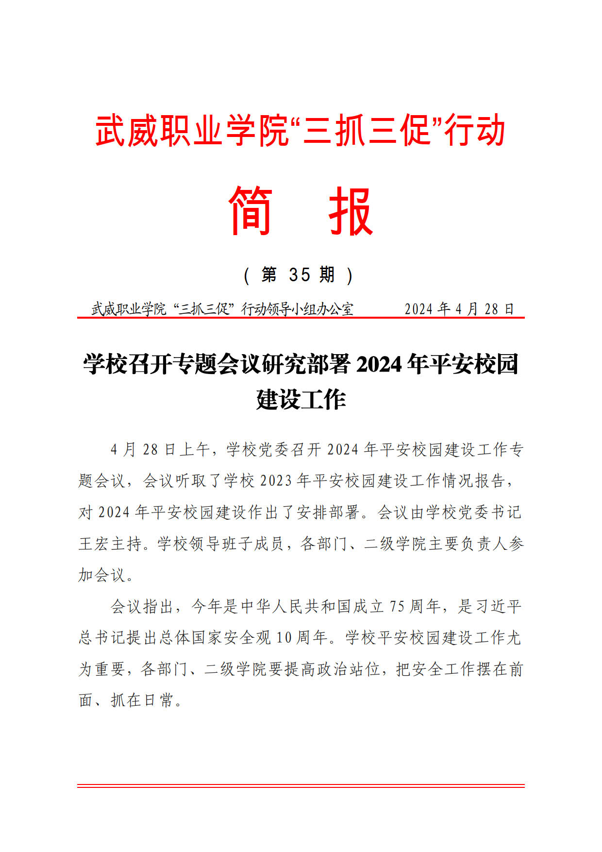 簡報第35期:學校召開專題會議研究部署2024年平安校園建設(shè)工作