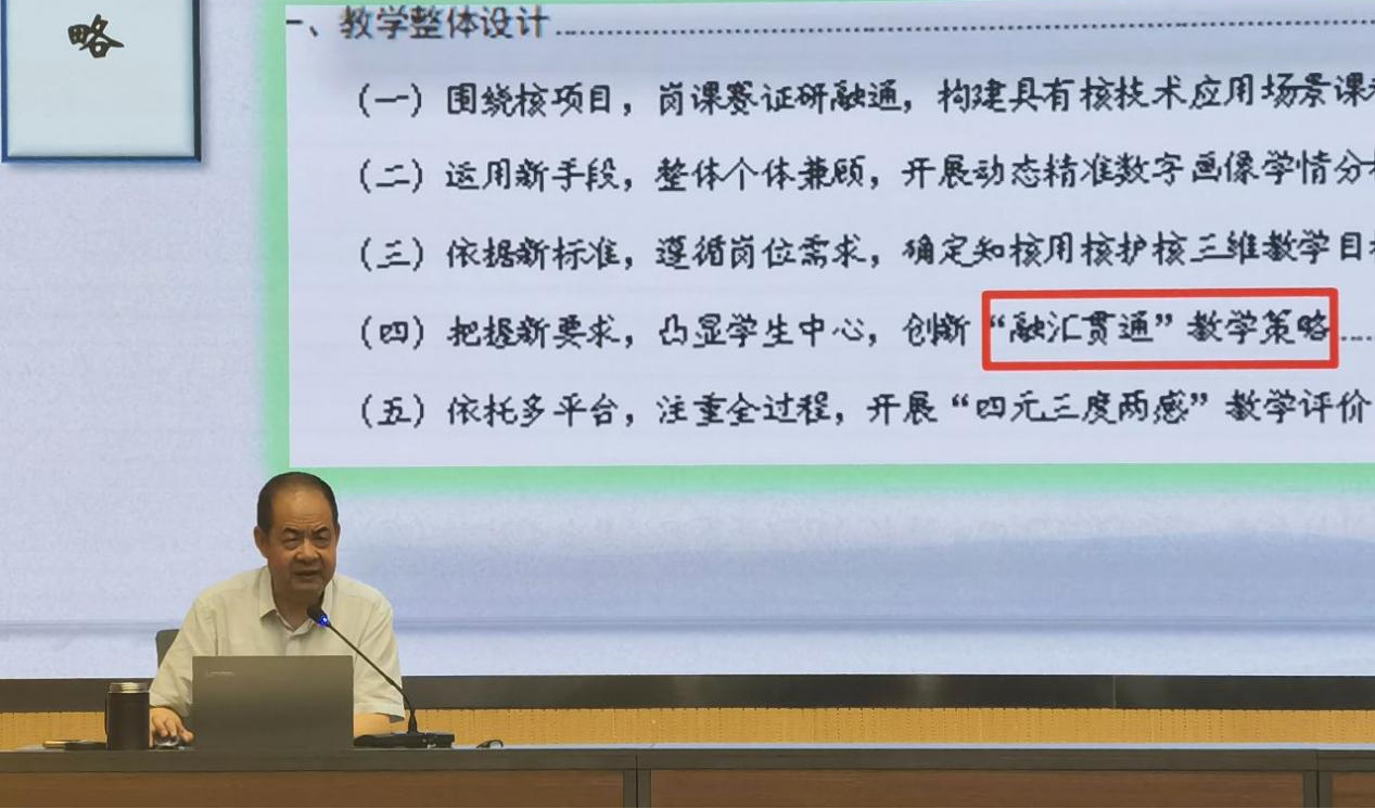 翟存祥以“獲獎作品是如何打磨的——以2023年核技術(shù)應(yīng)用作品為例”為題,對標(biāo)國家教學(xué)能力大賽標(biāo)準(zhǔn),總結(jié)參賽經(jīng)驗,對比賽中教學(xué)團隊的組建、參賽項目的選題、人才培養(yǎng)方案的完善、課程標(biāo)準(zhǔn)的制訂、教學(xué)實施方案和教案撰寫、課堂實錄視頻的拍攝以及賽場答辯的準(zhǔn)備做了深入細(xì)致的分析。