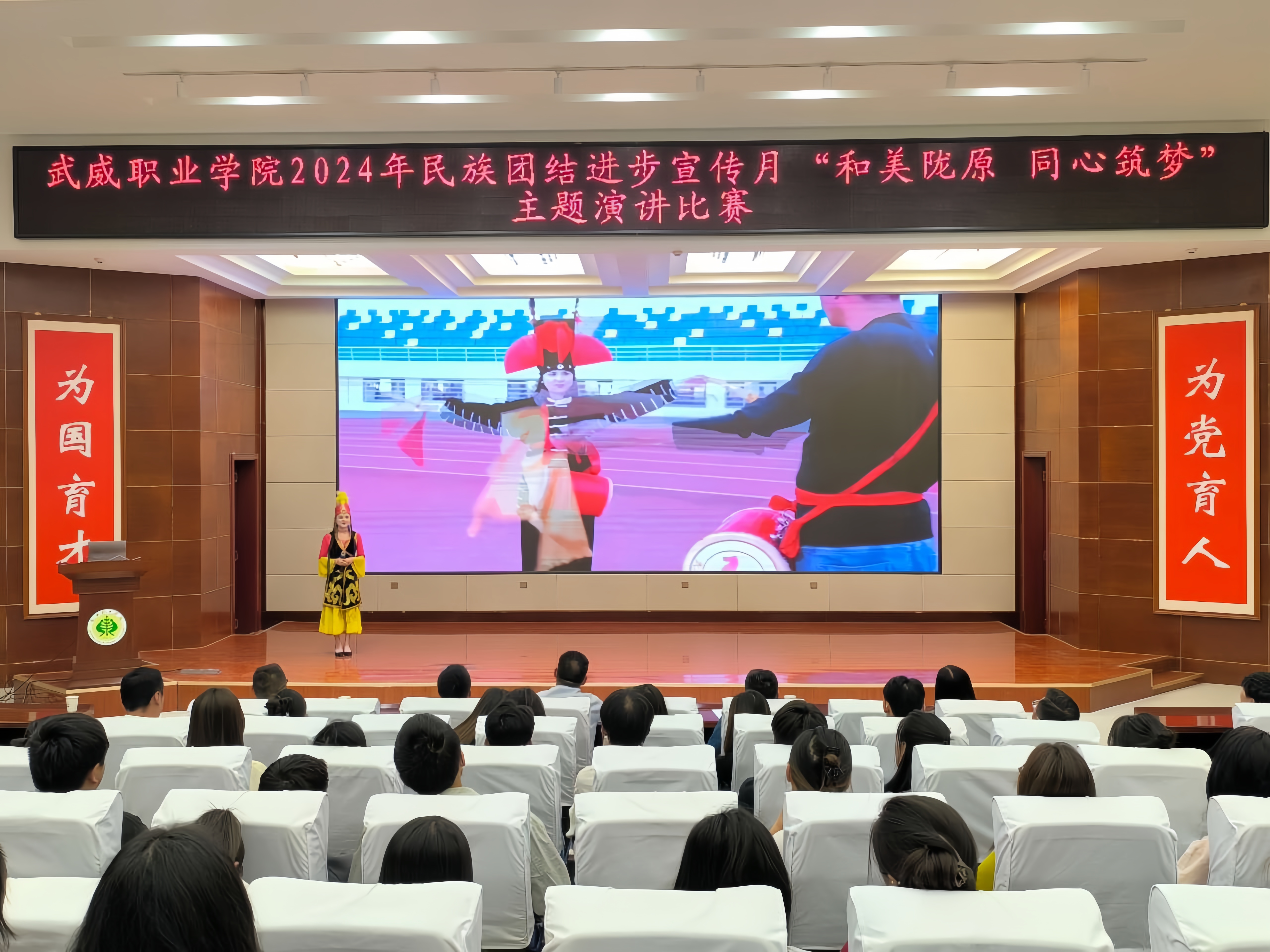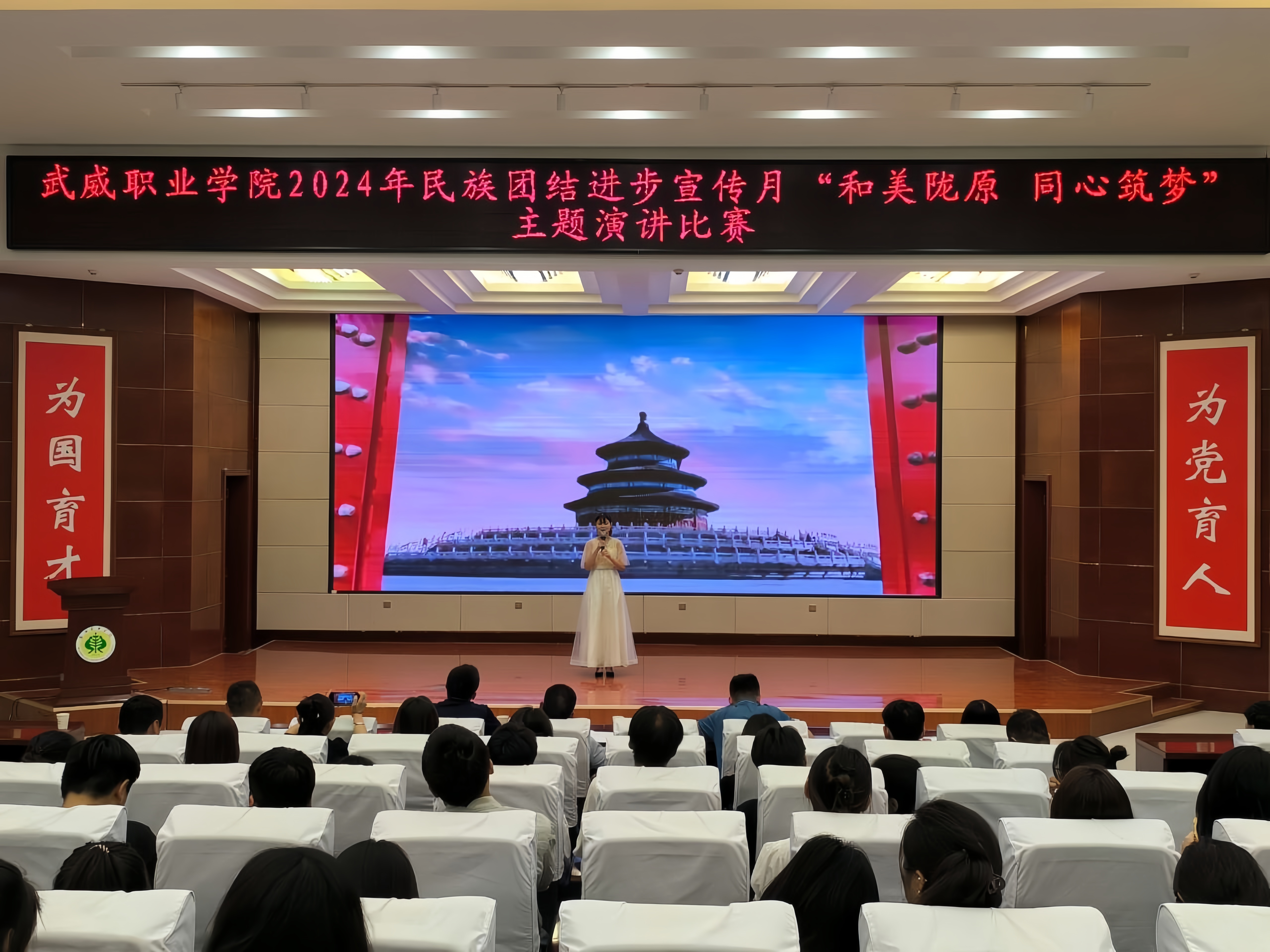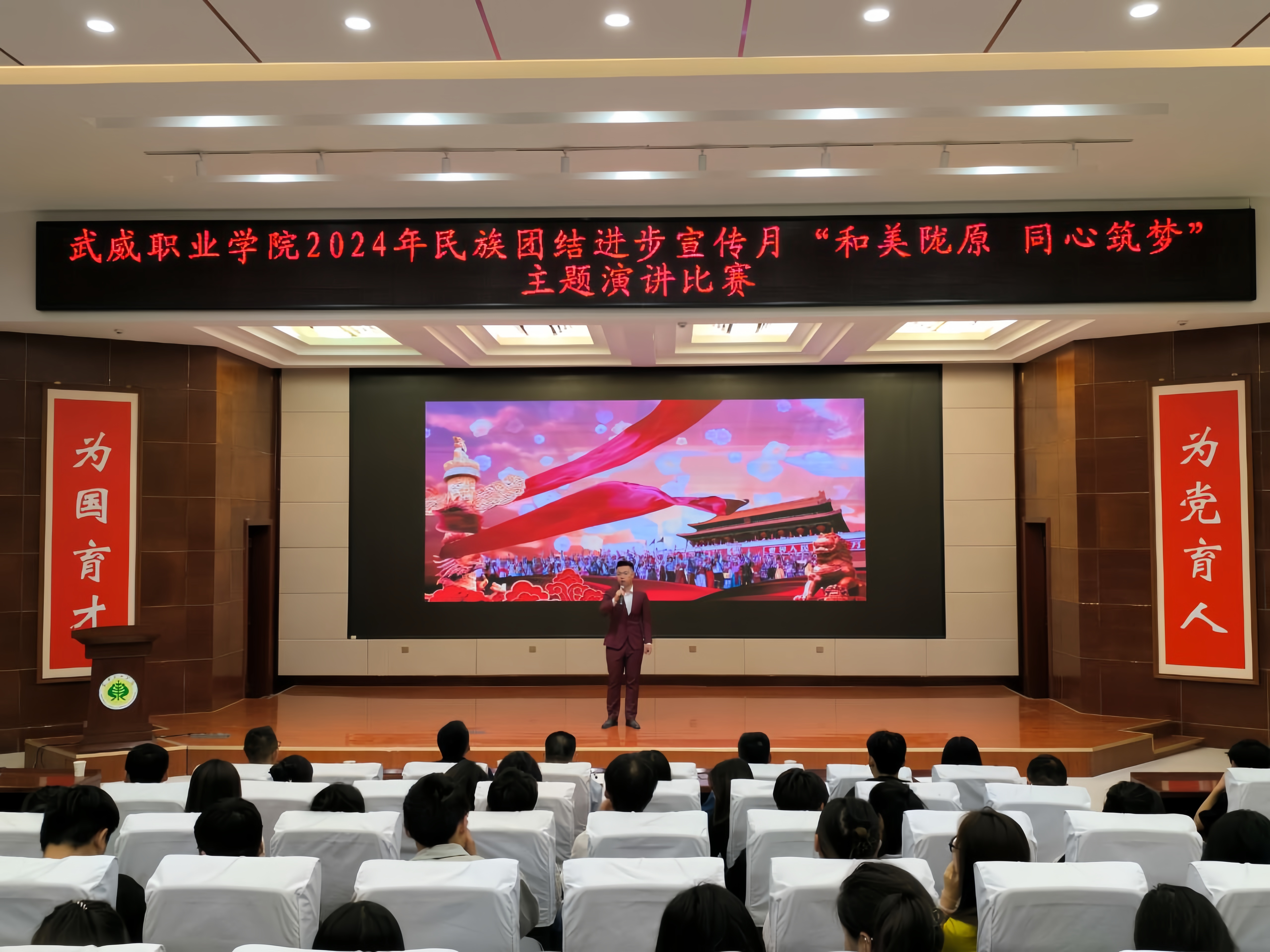 為持續(xù)深化民族團結(jié)進步教育,進一步引導各族師生牢固樹立“四個與共”的共同體理念。學校于5月30日晚在學生發(fā)展中心菁英廳舉辦了“和美隴原 同心筑夢”主題演講比賽。200余名師生參加活動。