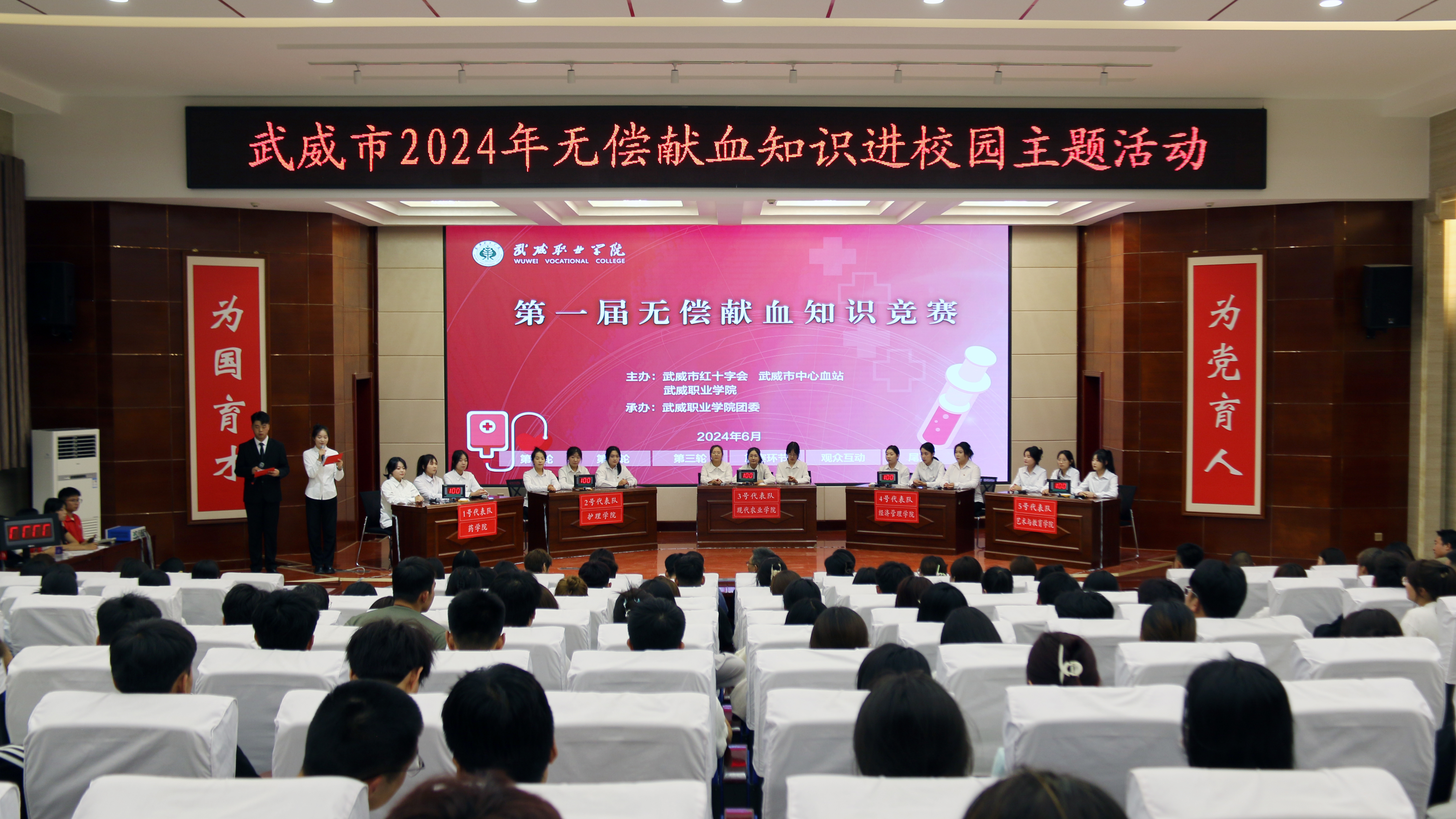 血液是生命的源泉,愛心是生命的曙光。6月17日,由武威職業(yè)學院、武威市紅十字會、武威市中心血站共同主辦的無償獻血知識競賽在菁英廳舉辦。