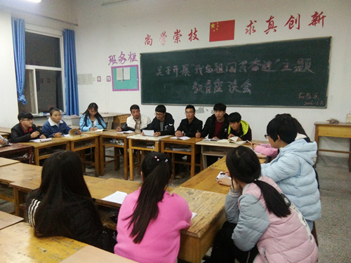 通過(guò)組織各班團(tuán)干部開(kāi)展 “我與祖國(guó)共奮進(jìn)”主題座談會(huì),讓團(tuán)干部們對(duì)歷史有了深刻的了解,也讓同學(xué)們?cè)谶@次座談會(huì)中深刻領(lǐng)悟到身為中華兒女要勿忘恥辱,為實(shí)現(xiàn)中華民族偉大復(fù)興的中國(guó)夢(mèng)而勤奮學(xué)習(xí)。同時(shí),各班團(tuán)支部以形式多樣的主題團(tuán)會(huì),表達(dá)出為了實(shí)現(xiàn)“中國(guó)夢(mèng)”,讓屈辱的歷史不再重演,將要萬(wàn)分珍惜今天這來(lái)之不易的和平生活,努力學(xué)習(xí),不斷進(jìn)取。