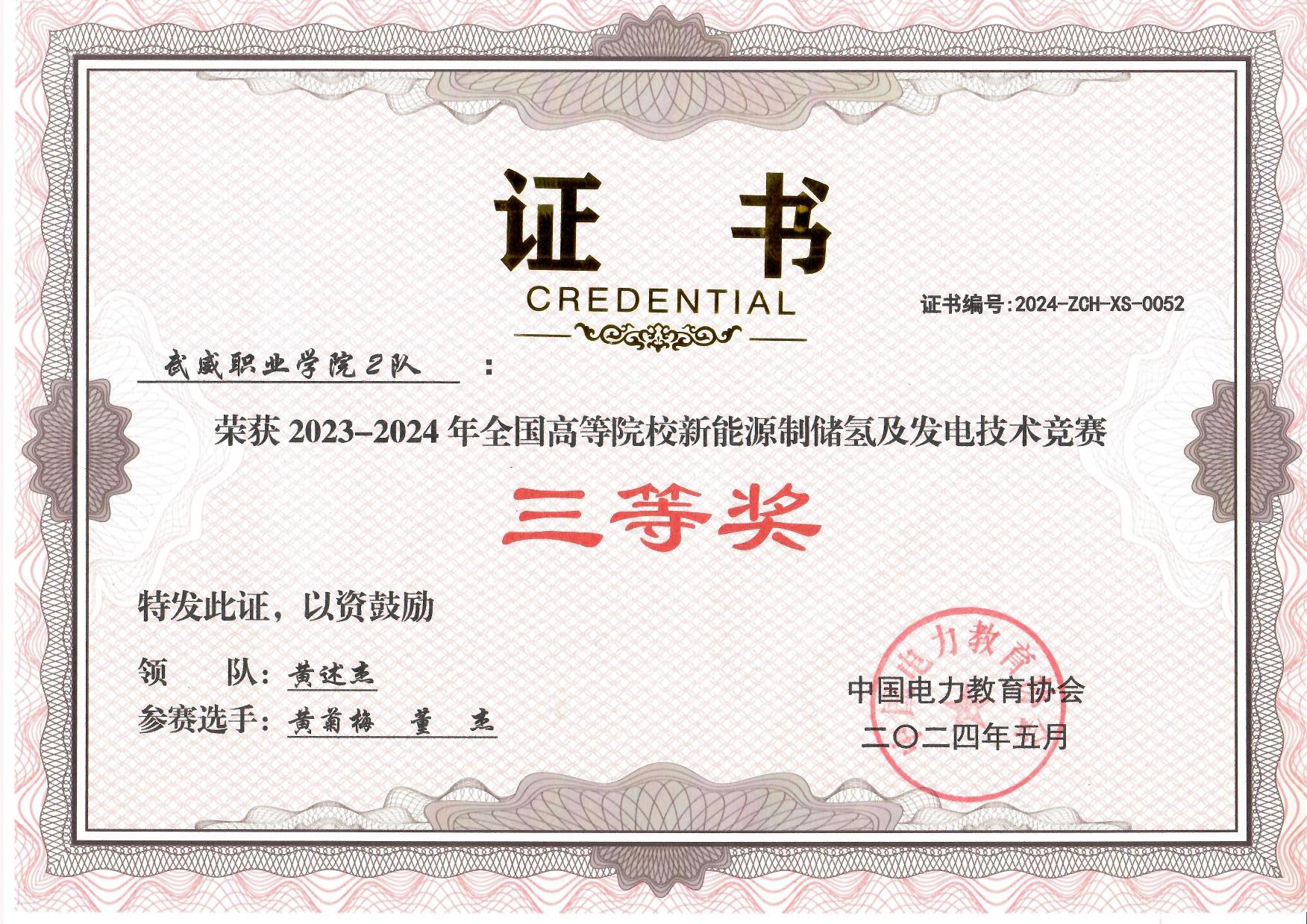 近日,在重慶電力高等??茖W(xué)校舉行的全國首屆高等學(xué)校新能源制儲(chǔ)氫及發(fā)電技術(shù)競賽中,中科低碳新能源技術(shù)學(xué)院教師王續(xù)峰和學(xué)生王智組成的參賽1隊(duì)榮獲全國二等獎(jiǎng),教師黃菊梅和學(xué)生董杰組成參賽2隊(duì)榮獲全國三等獎(jiǎng)。?