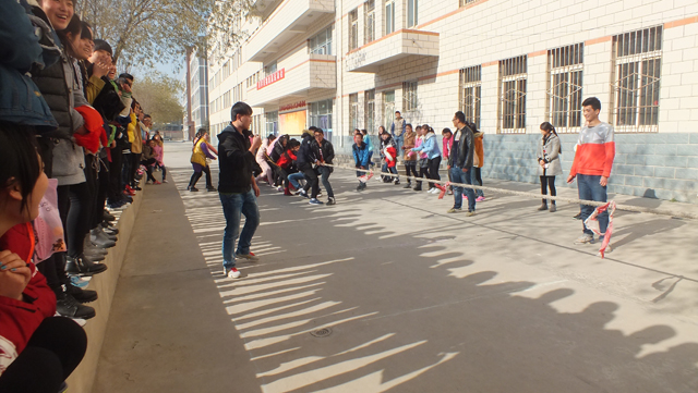 隨著蔡柱山宣布運(yùn)動(dòng)會(huì)正式開始的指令發(fā)出,拔河決賽立刻在熱烈的氣氛中拉開了架勢(shì),進(jìn)入決賽的班級(jí)在裁判的指導(dǎo)下迅速進(jìn)入指定位置,各班同學(xué)紛紛加油助威,運(yùn)動(dòng)場(chǎng)上氣氛頓時(shí)被調(diào)動(dòng)起來了。根據(jù)賽程安排,籃球賽、“15人跳繩”、乒乓球賽等集體和單人的各項(xiàng)比賽依次有序進(jìn)行,特別是跳繩比賽,參與面廣,同學(xué)們都積極投入其中,感受到運(yùn)動(dòng)的樂趣和團(tuán)結(jié)的力量。