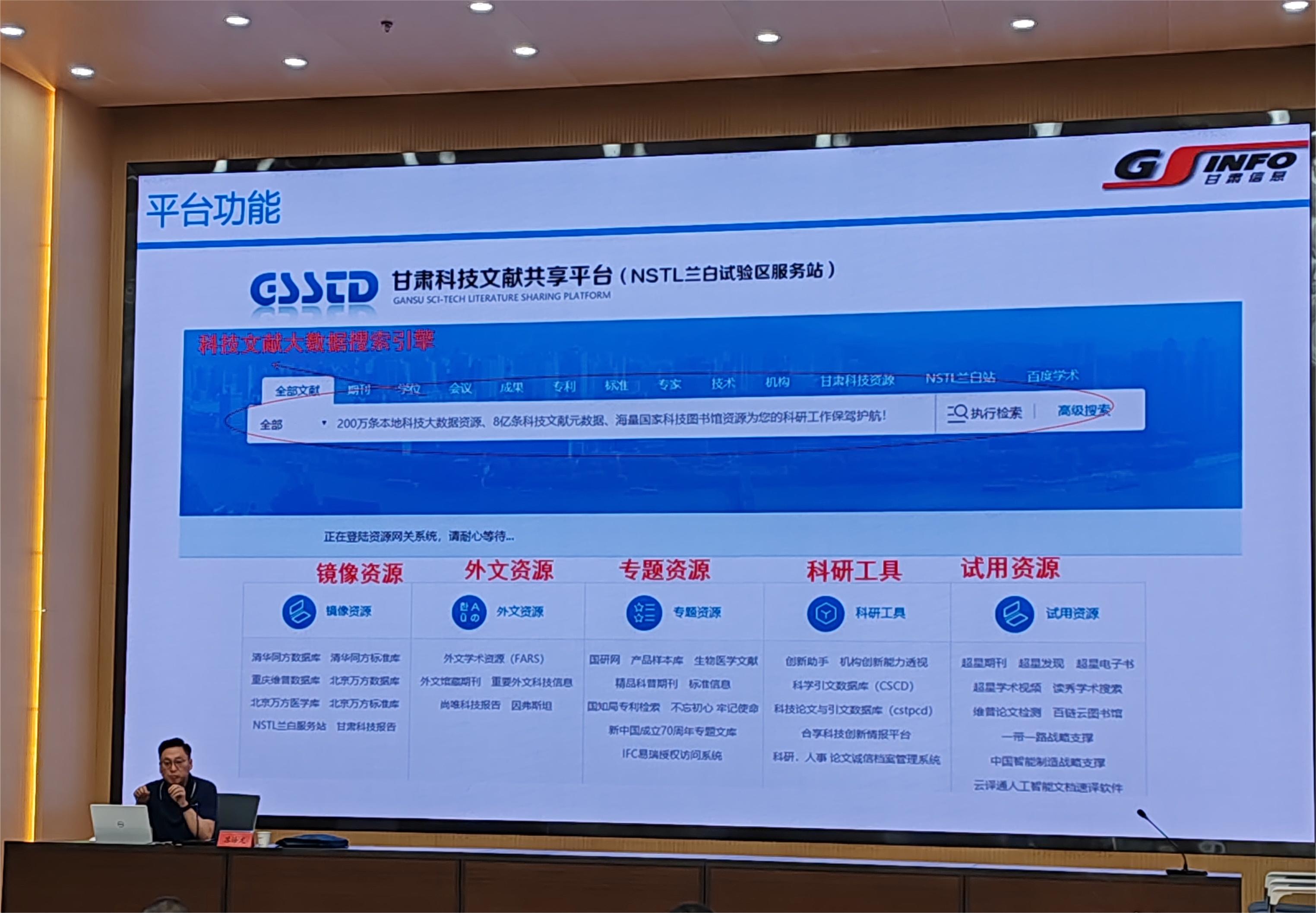 蘇海龍研究員以《如何利用科技文獻提升科研創(chuàng)新能力》為主題開展講座。講座分別從科技文獻的重要性、平臺功能及數(shù)據(jù)資源、醫(yī)學科研創(chuàng)新與文獻保障、科研相關(guān)問題和實際操作演示幾個方面講述科研項目申報中文獻檢索與文獻查閱的重要性,并介紹了甘肅科技文獻共享平臺,展示了平臺的檢索功能,為大家拓寬了文獻檢索的渠道,提升了教師信息檢索能力。