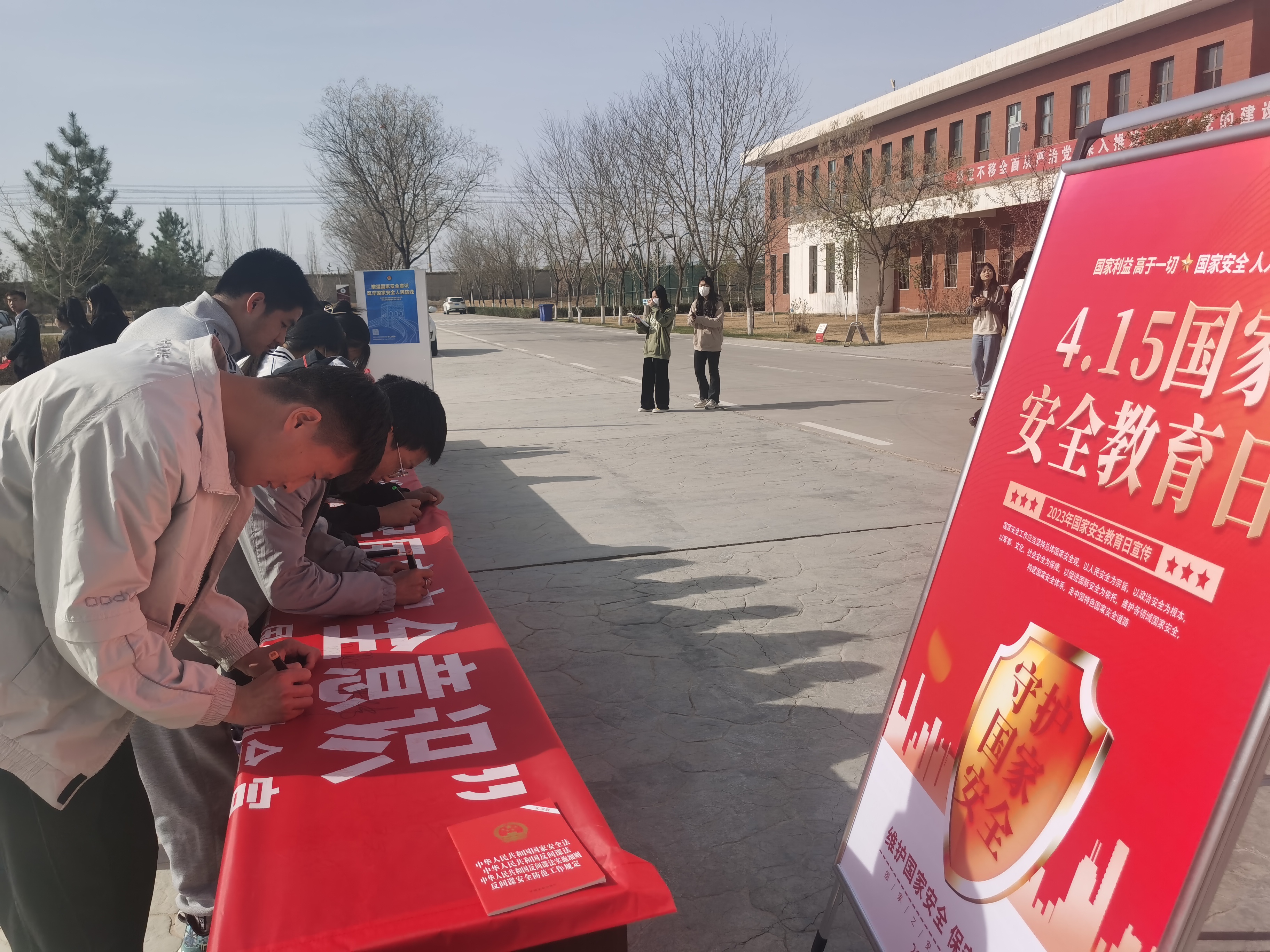 4月15日,學(xué)校在學(xué)生發(fā)展中心組織開展了2023年全民國家安全教育日集中宣傳教育活動(dòng),500多名師生代表參加了活動(dòng)。活動(dòng)中,通過懸掛橫幅、張貼海報(bào)、瀏覽展板、發(fā)放宣傳資料、觀看警示教育片、承諾簽名等方式集中開展了反邪教、反恐怖、防間諜等安全知識(shí)及《國家安全法》《反間諜法》《反恐怖主義法》《網(wǎng)絡(luò)安全法》等相關(guān)法律法規(guī)宣傳,向廣大師生普及了國家安全相關(guān)法律法規(guī)知識(shí)。