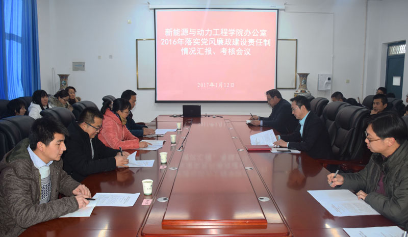 1月12日下午,學院副院長田迎春帶領(lǐng)學院第六考核組,對新能源與動力工程學院辦公室2016年度黨風廉政建設和反腐敗工作進行了全面檢查考核。新能源與動力工程學院全體教職工參加了會議。