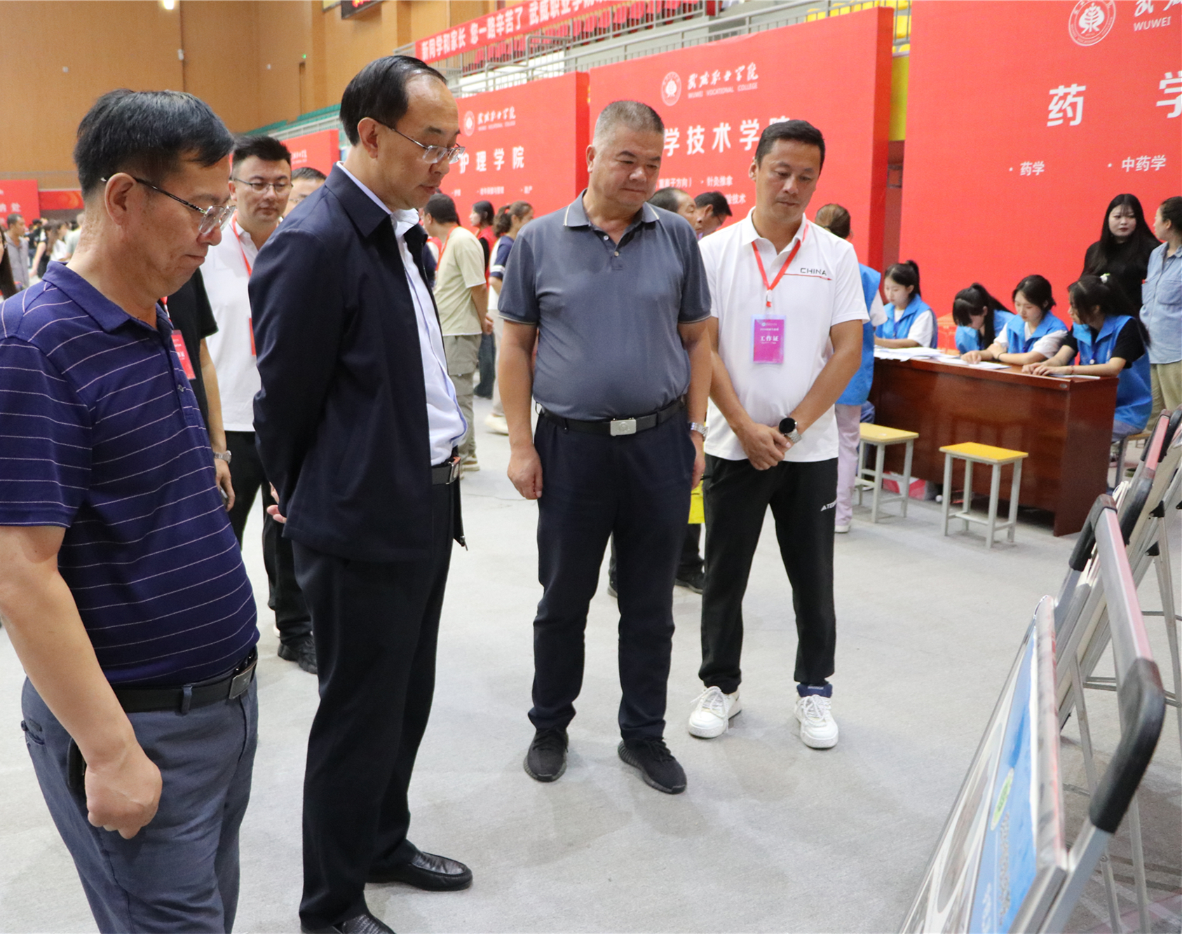校領(lǐng)導(dǎo)一一走過(guò)新生報(bào)到處、綠色通道、繳費(fèi)處和各二級(jí)學(xué)院迎新報(bào)到點(diǎn),了解新生報(bào)到情況,仔細(xì)詢問(wèn)智慧學(xué)工平臺(tái)使用情況,親切問(wèn)候堅(jiān)守崗位的師生志愿者。在醫(yī)學(xué)技術(shù)學(xué)院報(bào)到點(diǎn)前,王宏與2024級(jí)放射治療技術(shù)(重離子方向)新生及家長(zhǎng)聊了起來(lái)——“歡迎你們來(lái)到武威職業(yè)學(xué)院學(xué)習(xí)!為什么會(huì)報(bào)考這個(gè)專業(yè)?”在得知學(xué)生家庭中有人從事重離子醫(yī)療領(lǐng)域的研發(fā)工作時(shí),王宏勉勵(lì)新生要努力學(xué)好專業(yè)、練好技能,爭(zhēng)做高素質(zhì)技術(shù)技能人才。在家長(zhǎng)休息區(qū),王宏與來(lái)自甘肅慶陽(yáng)的新生家長(zhǎng)親切交談,并介紹了學(xué)校的辦學(xué)情況,建議學(xué)生和家長(zhǎng)在校園里走一走看一看,多了解熟悉學(xué)校,幫助學(xué)生盡快適應(yīng)大學(xué)生活,并祝愿學(xué)生家長(zhǎng)在武期間,一切順利。