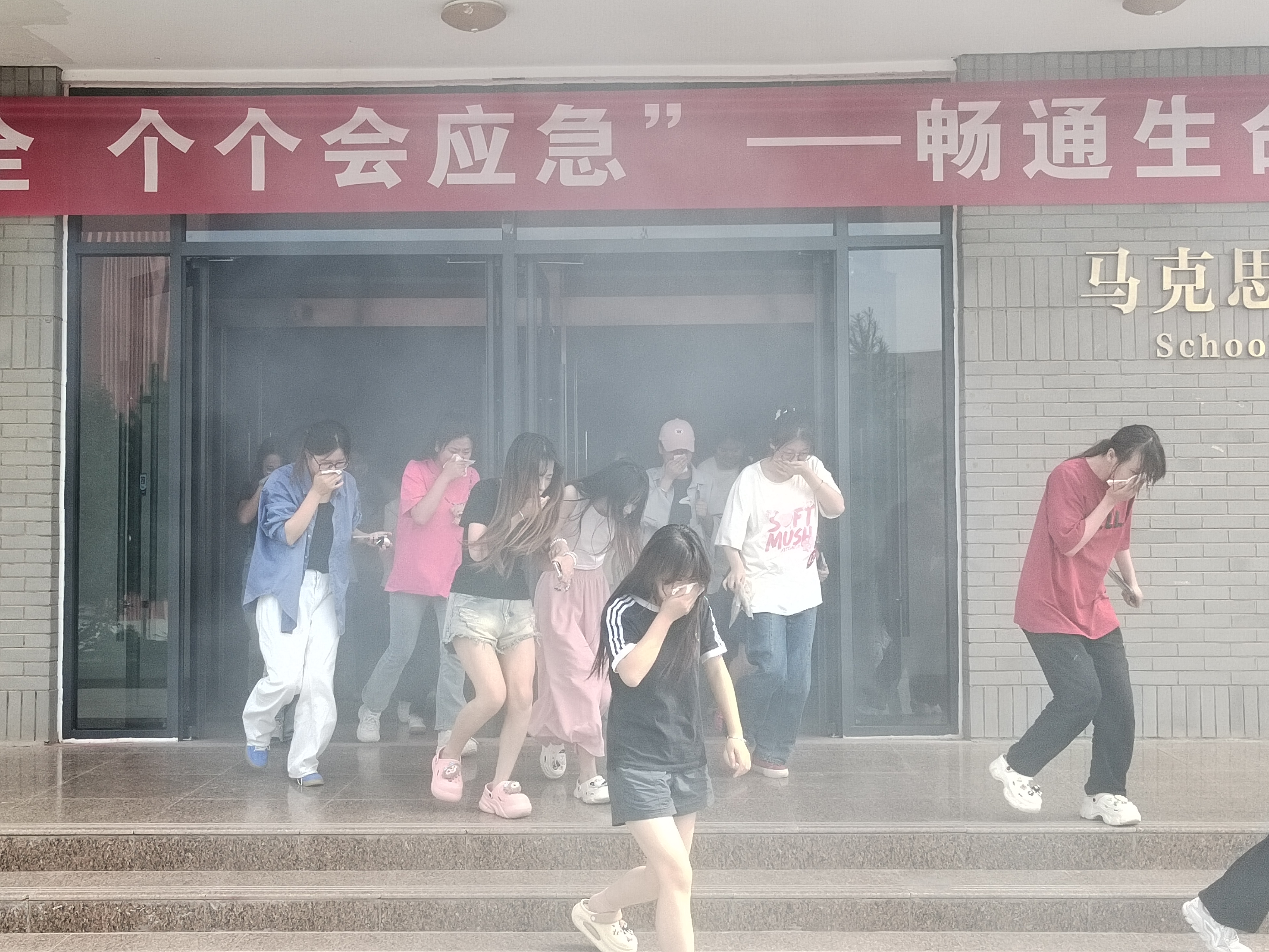 下午4點30分,隨著警報響起,學(xué)校應(yīng)急疏散演練正式開始,上課教師立即停止上課組織學(xué)生開始有序疏散,同學(xué)們用濕毛巾捂住口鼻,在安保、學(xué)工人員的指揮下,按照逃生路線迅速有序疏散。在5分鐘內(nèi),8000多名師生全部按照演練部署撤離到了指定安全區(qū)域集合,演練取得圓滿成功。