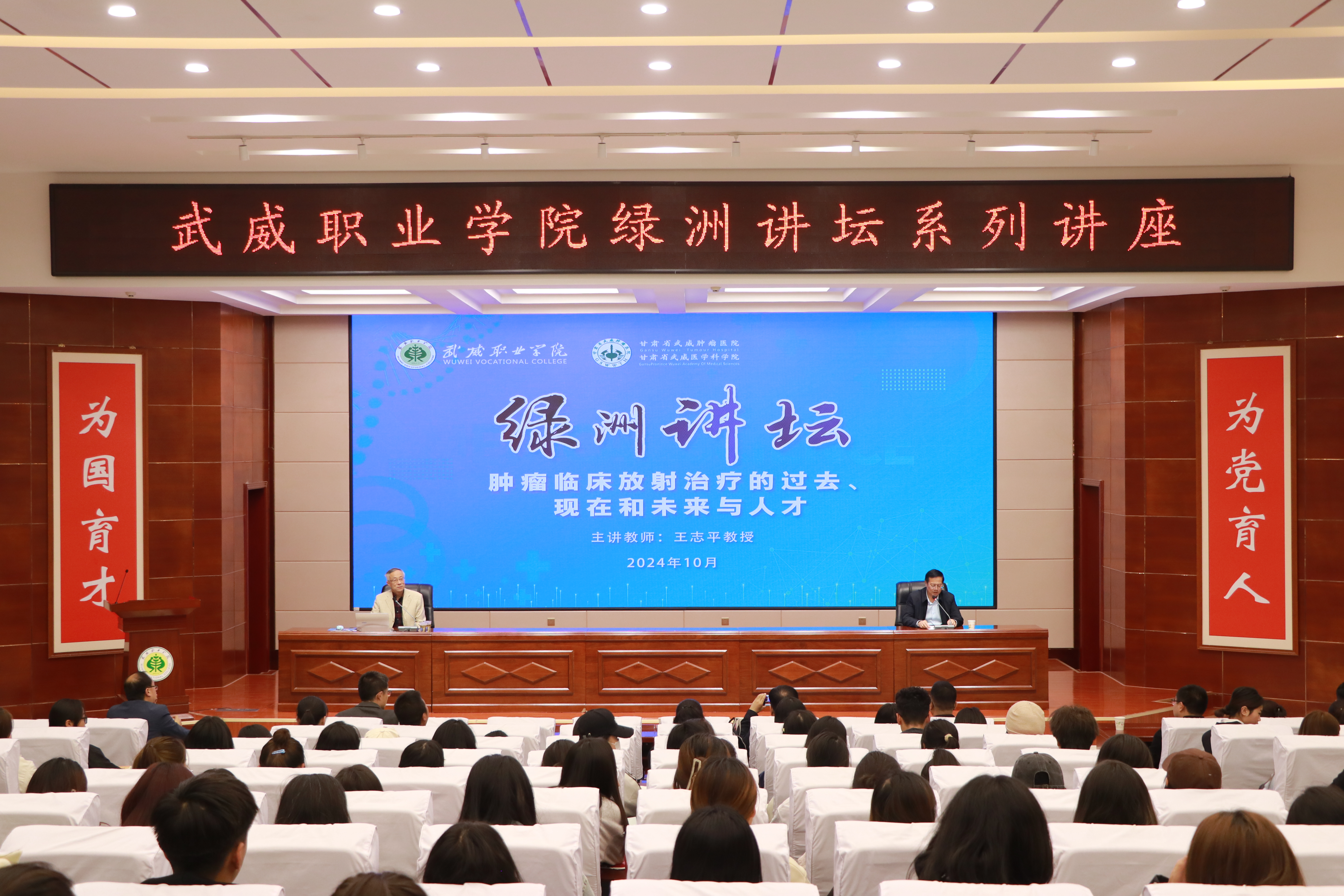 報(bào)告會(huì)由學(xué)校校長(zhǎng)、黨委副書記張開(kāi)禮主持,特邀蘭州大學(xué)第二醫(yī)院王志平教授作了“腫瘤臨床放射治療的過(guò)去、現(xiàn)在和未來(lái)與人才”的主題講座,甘肅省武威醫(yī)學(xué)科學(xué)院腫瘤醫(yī)院醫(yī)護(hù)人員代表、蘭州大學(xué)實(shí)習(xí)生代表和學(xué)校師生代表共計(jì)220余人參加了報(bào)告會(huì)。