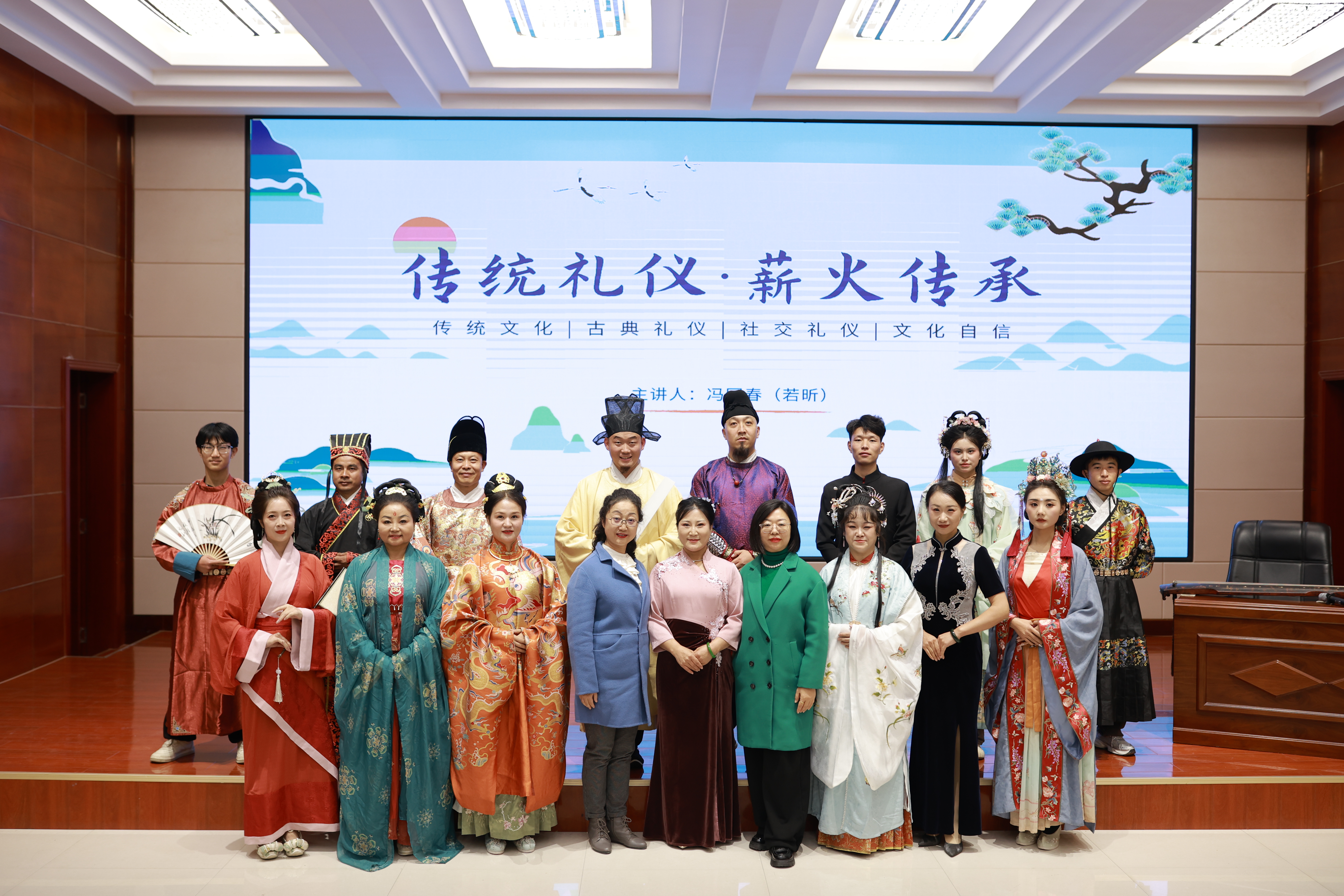 馮國春老師以深厚的學(xué)識和豐富的經(jīng)驗(yàn),詳細(xì)向?qū)W生們講解了各個(gè)歷史時(shí)期的傳統(tǒng)禮儀,從禮器、禮服到禮樂,每一個(gè)朝代都生動(dòng)而詳盡。團(tuán)隊(duì)成員將禮儀通過現(xiàn)場示范的方式呈現(xiàn)給在場的每一位同學(xué)。他們不僅展示了禮儀的外在形式,更傳達(dá)了禮儀背后的文化內(nèi)涵和精神價(jià)值。