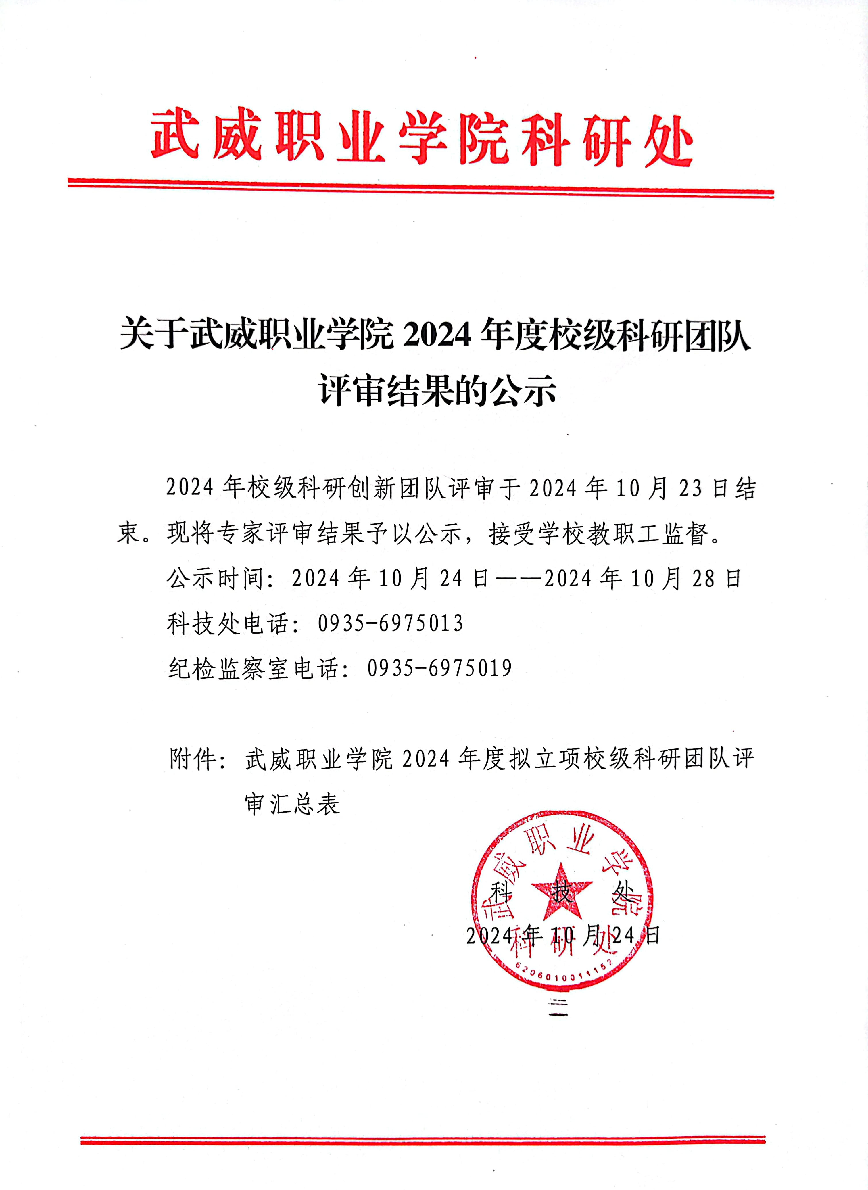 關(guān)于武威職業(yè)學(xué)院2024年度校級科研團(tuán)隊評審結(jié)果的公示