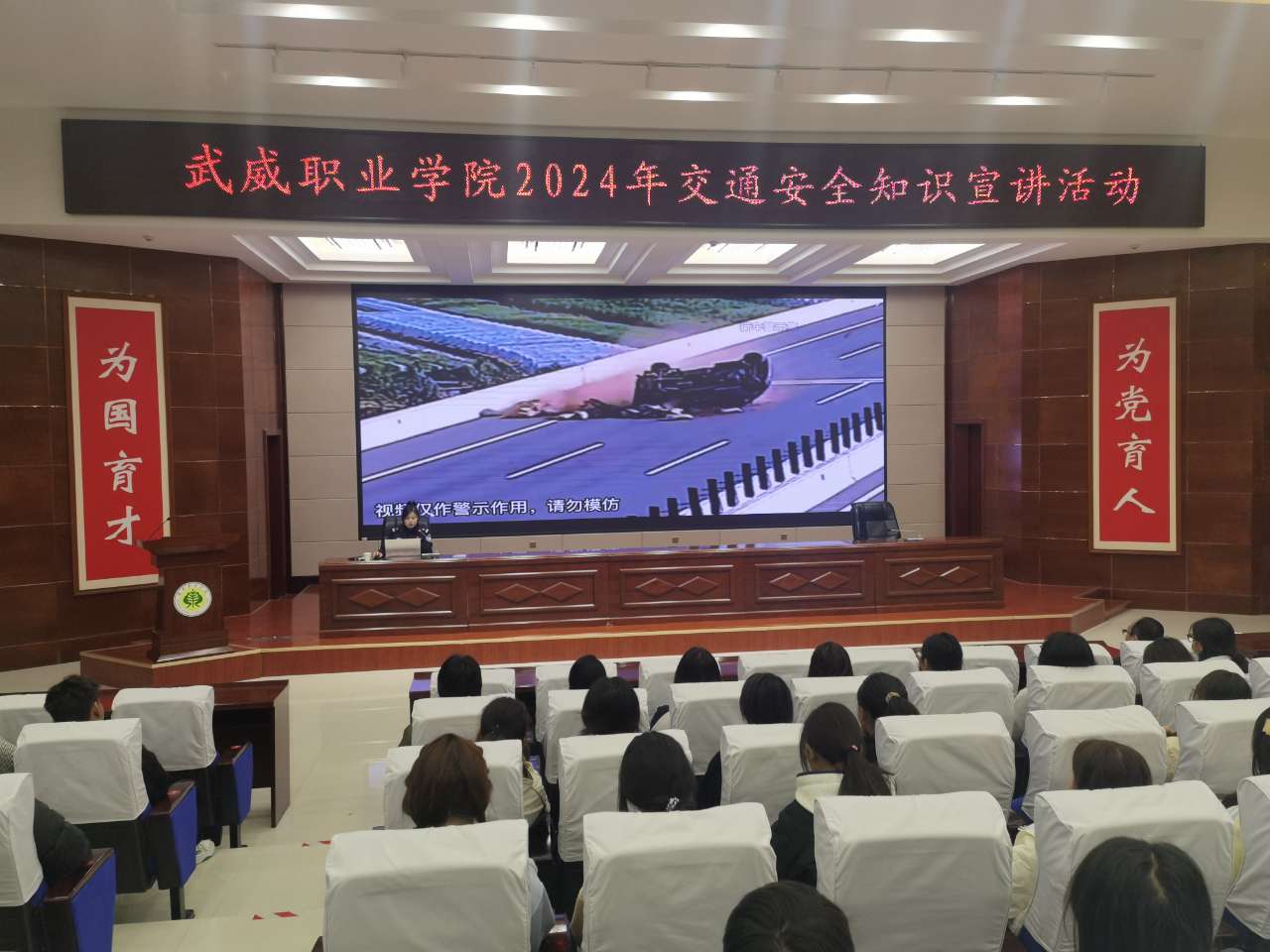 為進一步推進平安校園建設,增強師生的交通安全意識,預防和減少交通事故的發(fā)生。10月24日,學校邀請武威市公安局交警支隊王穎警官來學校開展交通安全知識宣講活動,為師生們帶來了一堂深刻的交通安全警示課。宣講活動由安全保衛(wèi)處處長李欣主持。
