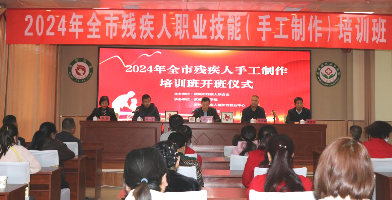 10月29日下午,由武威市殘聯(lián)主辦、我校承辦的2024年全市殘疾人職業(yè)技能(手工制作)培訓(xùn)班在涼州區(qū)殘疾人托養(yǎng)中心(武威職業(yè)學(xué)院非遺文創(chuàng)實(shí)踐實(shí)訓(xùn)基地)順利開班。武威市殘疾人聯(lián)合會(huì)黨組成員、副理事長柯長文,涼州區(qū)康德頤養(yǎng)院總經(jīng)理李福山,涼州剪紙市級(jí)非遺代表性傳承人鄭霞,我校黨委委員、副校長王守云及全體參訓(xùn)學(xué)員出席開班儀式。開班儀式由創(chuàng)新創(chuàng)業(yè)學(xué)院副院長孟建文主持。