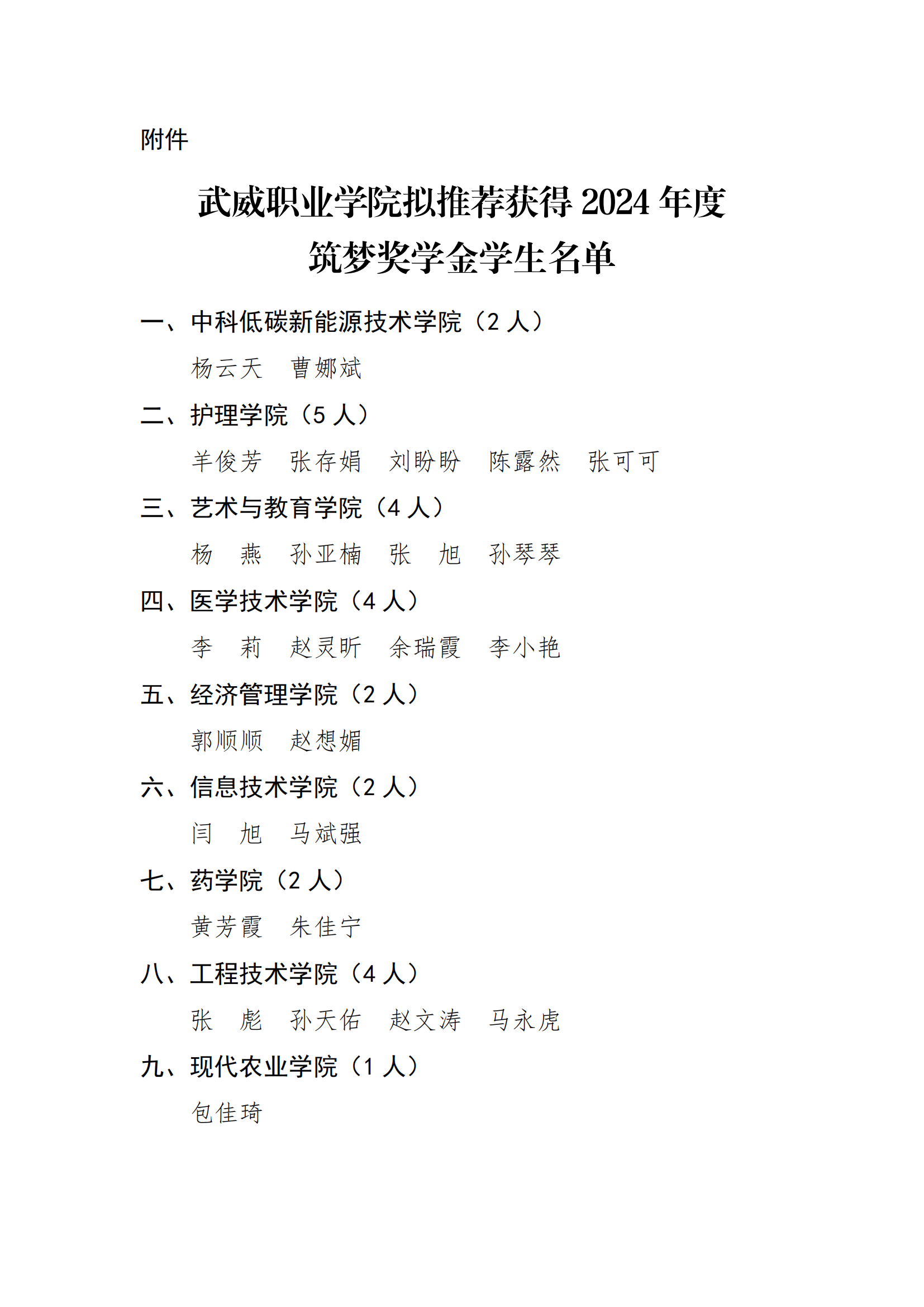武威職業(yè)學(xué)院關(guān)于2024年度筑夢獎(jiǎng)學(xué)金評選結(jié)果的公示
