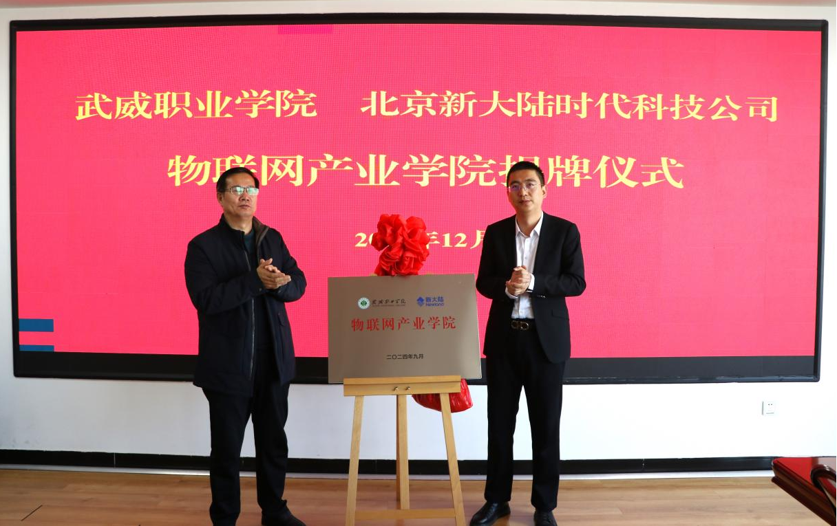 為全面深化產(chǎn)教融合,加強(qiáng)校企合作,進(jìn)一步提高我校人才培養(yǎng)質(zhì)量。12月3日,學(xué)校在能源科技樓811會議室舉行武威職業(yè)學(xué)院和北京新大陸時代科技公司物聯(lián)網(wǎng)產(chǎn)業(yè)學(xué)院簽約暨揭牌儀式。北京新大陸時代科技公司西北區(qū)總監(jiān)劉寧、技術(shù)總監(jiān)樊斌,相關(guān)業(yè)務(wù)部門負(fù)責(zé)人,學(xué)校校長、黨委副書記張開禮、黨委副書記翟存祥、相關(guān)部門負(fù)責(zé)人及教師代表參加活動。黨委委員、副校長王永緒主持儀式。