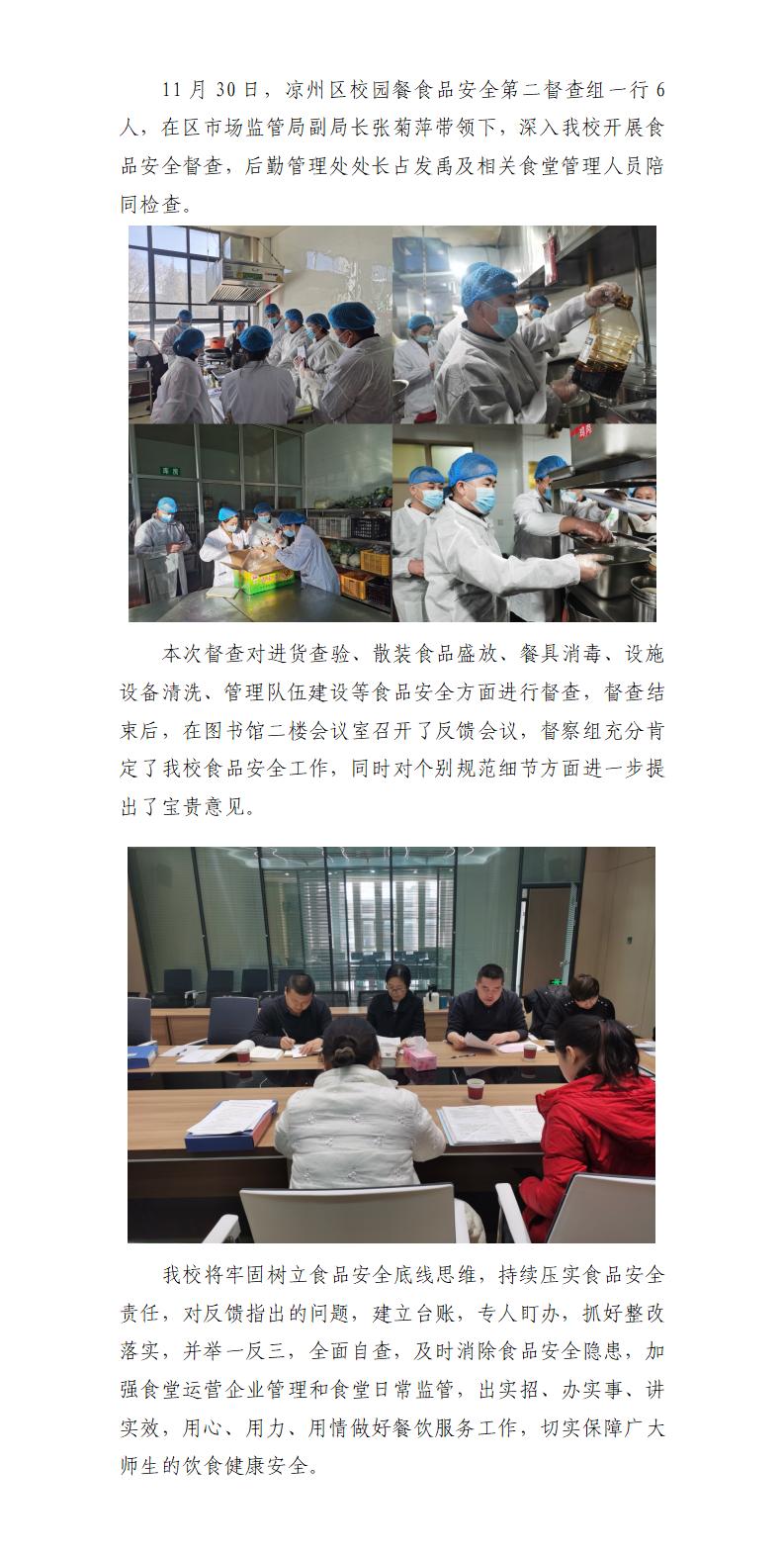 涼州區(qū)校園餐食品安全第二督查組來我校開展食品安全專項督查