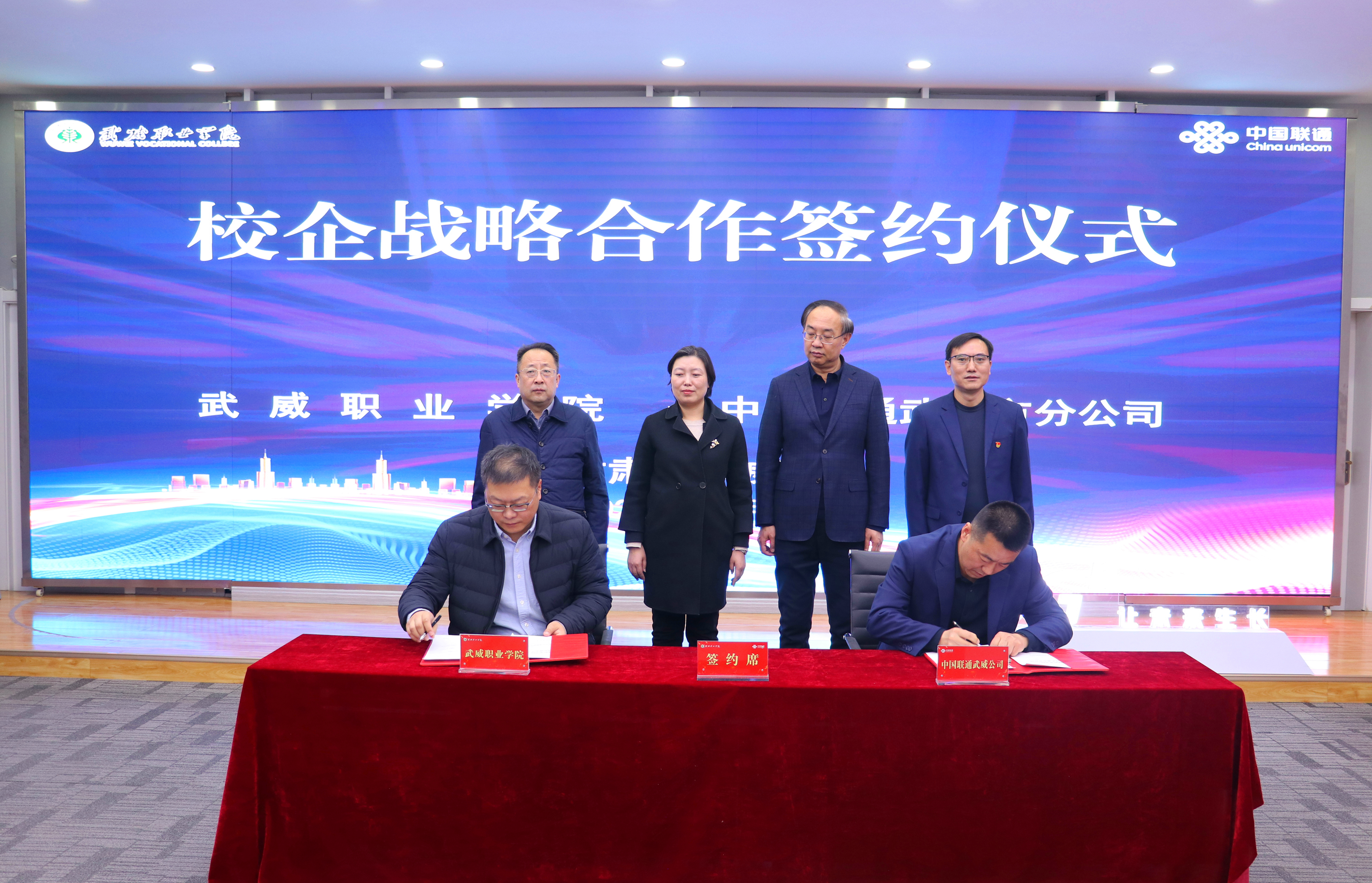 雙方簽署《武威職業(yè)學院與中國聯(lián)通武威市分公司校企戰(zhàn)略合作協(xié)議》。