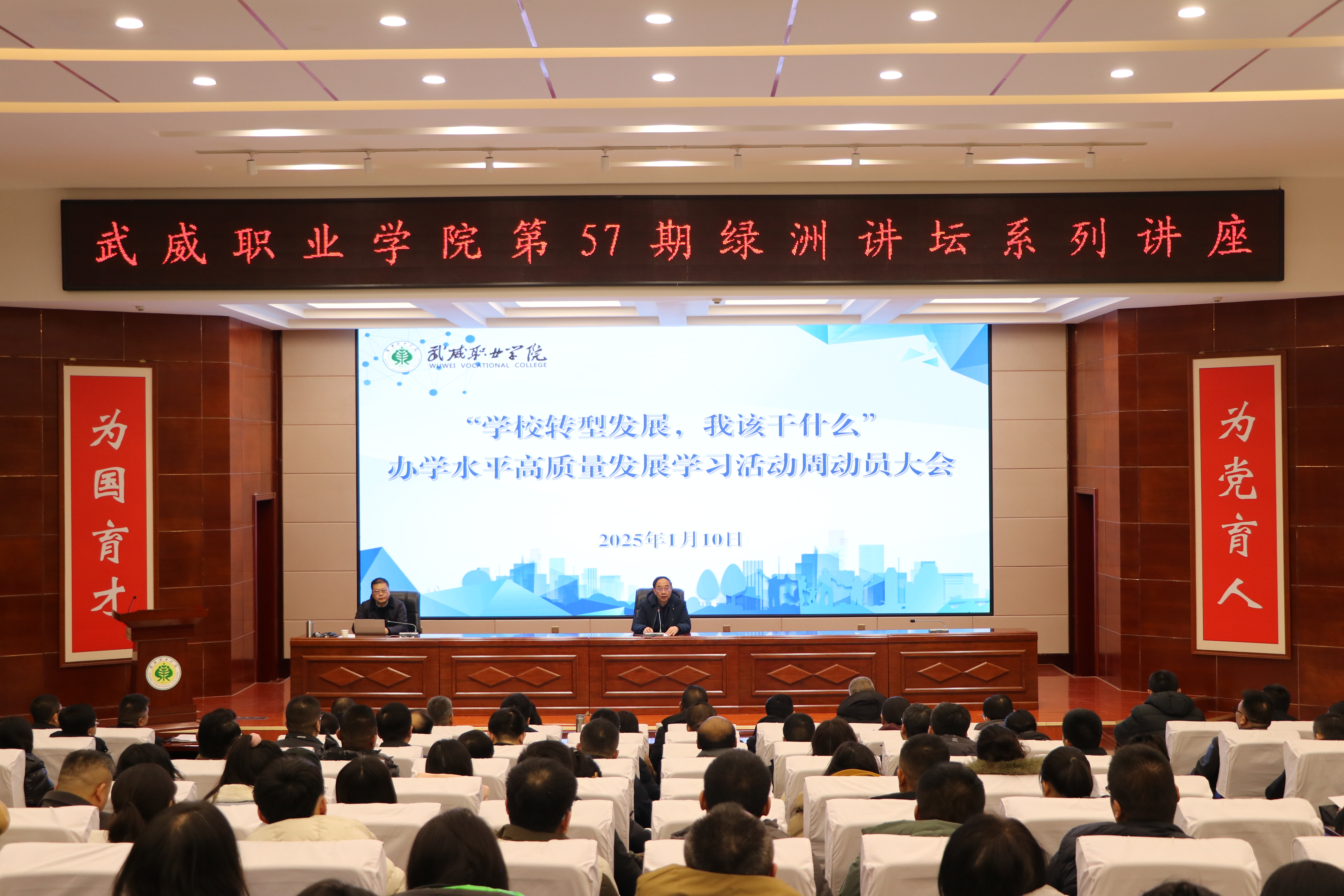 校長李海軍教授在會(huì)上作了“抓牢發(fā)展新機(jī)遇,啟航建設(shè)新征程”主題報(bào)告。報(bào)告全面闡述了學(xué)校發(fā)展的政策機(jī)遇、區(qū)域機(jī)遇、資源機(jī)遇、自身機(jī)遇,以及具有針對(duì)性和可操作性的具體推進(jìn)舉措。李海軍強(qiáng)調(diào),加快發(fā)展現(xiàn)代職業(yè)教育是黨中央、國務(wù)院做出的重大戰(zhàn)略部署,要打造“兩區(qū)兩地”(全國荒漠化治理樣板區(qū)、西部現(xiàn)代寒旱農(nóng)業(yè)示范區(qū)、全省新能源新材料產(chǎn)業(yè)基地、絲綢之路經(jīng)濟(jì)帶黃金旅游目的地),重點(diǎn)培育壯大新能源及裝備制造、特色醫(yī)藥、綠色環(huán)保等重點(diǎn)產(chǎn)業(yè)鏈和“8+N”現(xiàn)代農(nóng)業(yè)優(yōu)勢(shì)主導(dǎo)產(chǎn)業(yè)。要提高對(duì)教師隊(duì)伍建設(shè)重要性的認(rèn)識(shí),對(duì)接產(chǎn)業(yè)需求科學(xué)設(shè)置專業(yè),構(gòu)建基于綜合職業(yè)能力培養(yǎng)的實(shí)踐導(dǎo)向課程體系,開展好實(shí)踐性教學(xué),做好辦學(xué)質(zhì)量評(píng)價(jià),推動(dòng)學(xué)校轉(zhuǎn)型升級(jí)、高質(zhì)量發(fā)展。