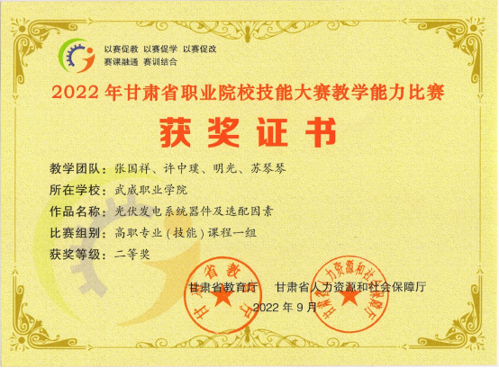 2022年中科低碳新能源技術共有20名教師參加甘肅省職業(yè)院校技能大賽教學能力比賽,獲得省級一等獎1項,二等獎2項,三等獎2項。