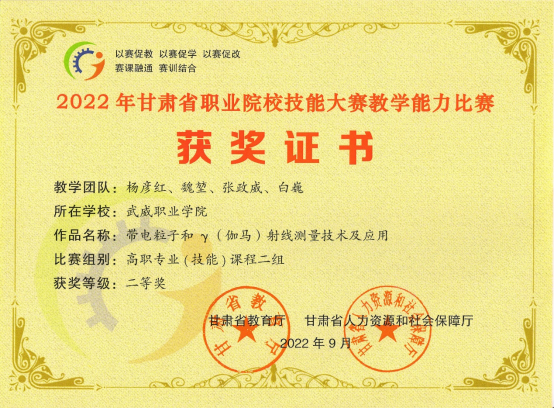 楊彥紅、魏堃、 張政威、白巍 | 帶點例子和伽馬射線測量技術及應用 | 省級 | 二等 |