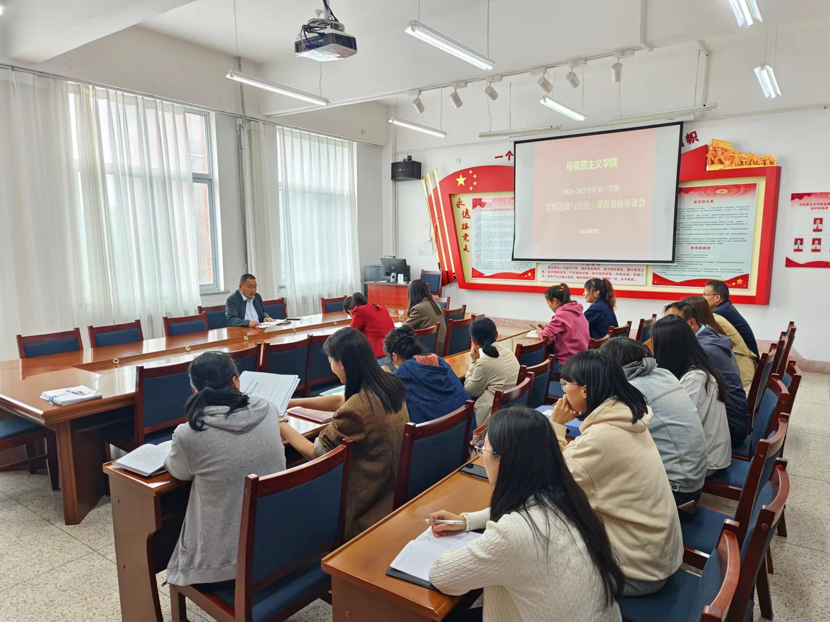 為深入學(xué)習(xí)貫徹黨的二十屆三中全會(huì)精神,精準(zhǔn)把握教材,提升思想政治理論課教學(xué)的實(shí)效性,9月9日,馬克思主義學(xué)院召開(kāi)新學(xué)期《思想道德與法治》集體備課會(huì),備課會(huì)由思想道德與法治教研室主任張靜文主持,全體教師參加會(huì)議。