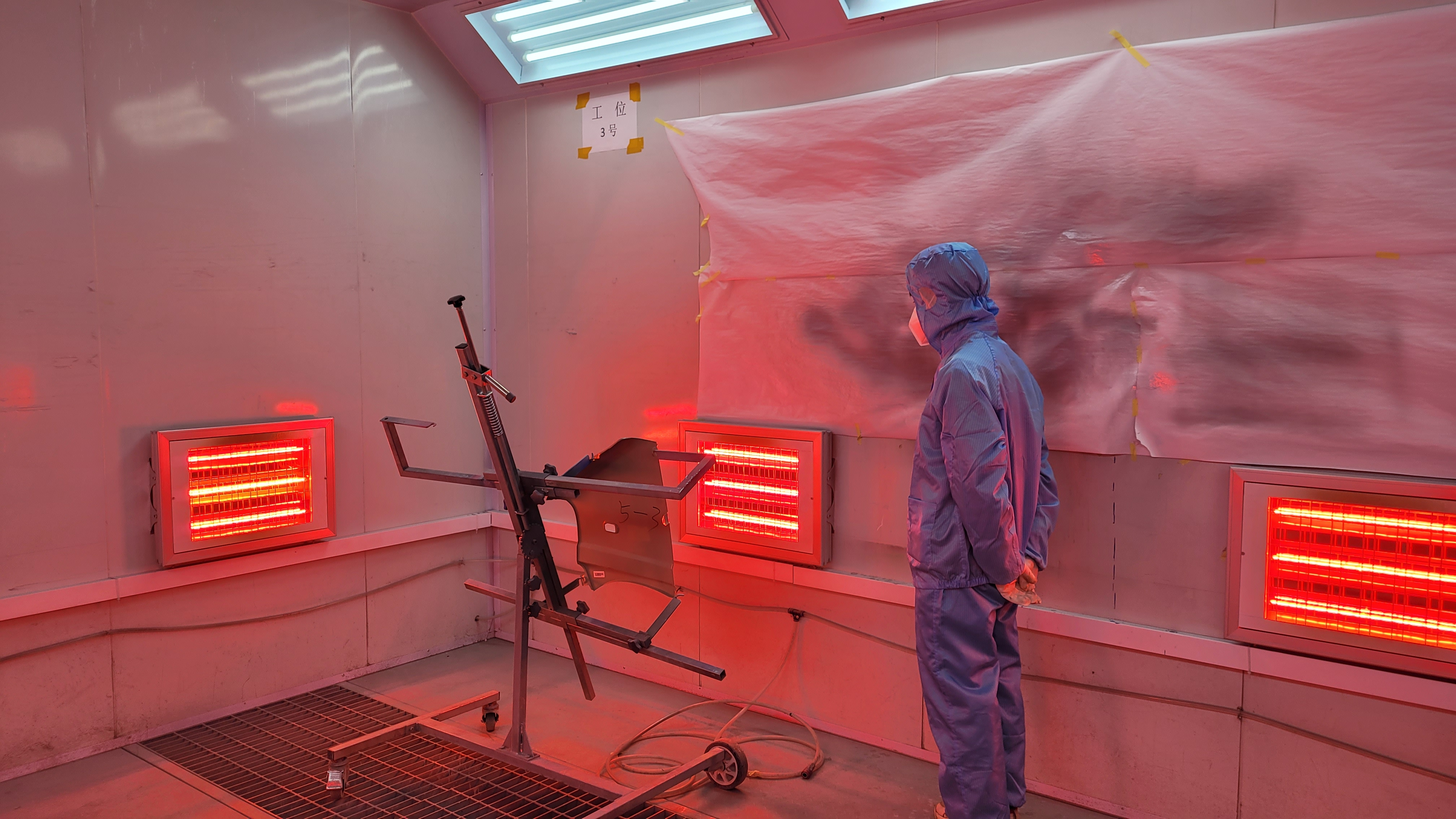 此實(shí)訓(xùn)室是兼鈑金、噴涂于一體的實(shí)訓(xùn)室,內(nèi)配有噴漆房、噴漆機(jī)、噴漆槍、普通和高性能噴漆、烘干箱、鈑金工作臺等,學(xué)生可以在真實(shí)且安全的壞境下練習(xí)和應(yīng)用鈑噴技術(shù),包括車身修補(bǔ)、涂裝物表面處理、烘干和噴漆圖層的評估等,是實(shí)訓(xùn)中心必要的設(shè)施之一。