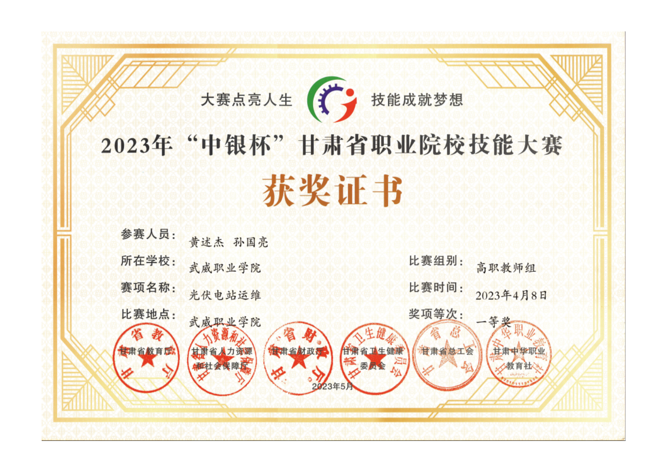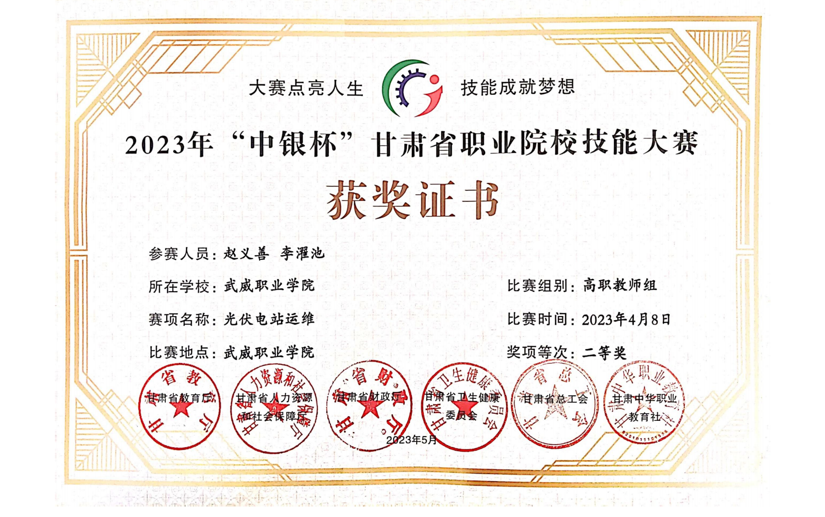 2023年甘肅省職業(yè)院校技能大賽光伏電站運(yùn)維賽項(xiàng)(高職教師組)獲獎情況