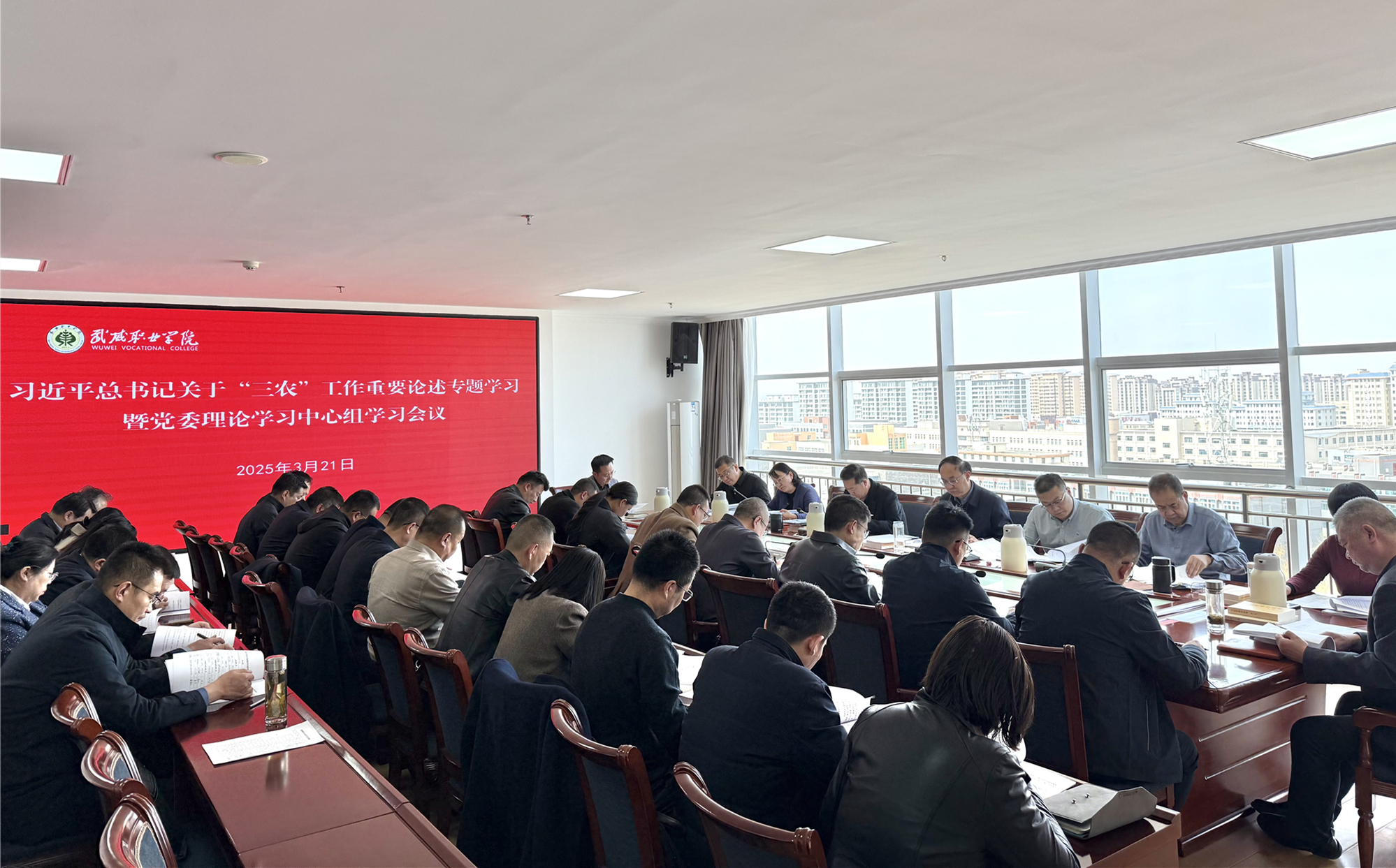 3月21日,學(xué)校召開黨委理論學(xué)習(xí)中心組學(xué)習(xí)會(huì)議,專題學(xué)習(xí)研討習(xí)近平總書記關(guān)于“三農(nóng)”工作重要論述。校黨委理論學(xué)習(xí)中心組成員參加,校長(zhǎng)李海軍,各部門、二級(jí)學(xué)院主要負(fù)責(zé)人列席。黨委書記王宏主持會(huì)議并講話。