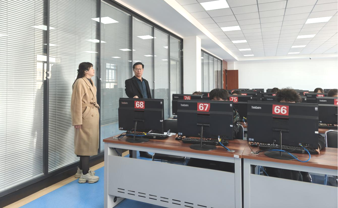 學(xué)校高度重視考試組織工作,成立專(zhuān)項(xiàng)工作組統(tǒng)籌協(xié)調(diào),培訓(xùn)考試中心、信息技術(shù)學(xué)院、后勤管理處等多部門(mén)協(xié)同聯(lián)動(dòng),確??荚嚾鞒桃?guī)范有序。培訓(xùn)考試中心嚴(yán)格遵循教育部考試標(biāo)準(zhǔn),系統(tǒng)開(kāi)展考務(wù)準(zhǔn)備工作。3月初完成機(jī)房設(shè)備壓力測(cè)試與全流程模擬演練,3月28日組織召開(kāi)考務(wù)工作專(zhuān)題會(huì)議,培訓(xùn)考試中心主任顏魯薪系統(tǒng)解讀了《全國(guó)計(jì)算機(jī)等級(jí)考試考務(wù)管理規(guī)范》等文件,重點(diǎn)部署考場(chǎng)設(shè)置、監(jiān)考流程、技術(shù)保障等關(guān)鍵環(huán)節(jié),全體考務(wù)人員通過(guò)專(zhuān)項(xiàng)培訓(xùn)實(shí)現(xiàn)操作規(guī)程全掌握。