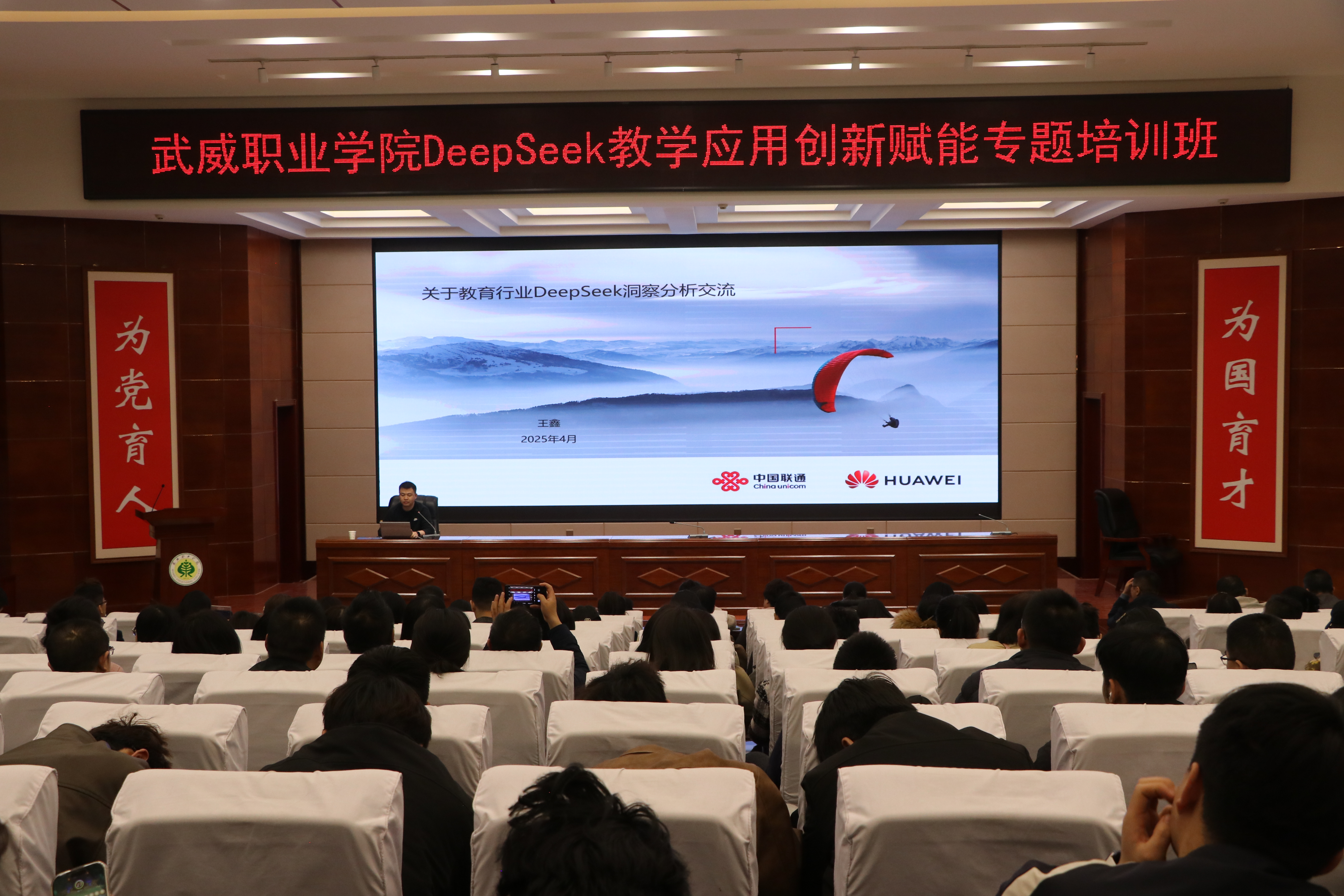 為深入探討DeepSeek技術(shù)的應(yīng)用,助力學(xué)校師生運(yùn)用AI工具進(jìn)行教學(xué)實踐、智慧課程建設(shè)與科學(xué)研究工作,為教學(xué)改革與教學(xué)創(chuàng)新實踐筑基賦能。4月3日,學(xué)校邀請聯(lián)通數(shù)據(jù)智能有限公司教育行業(yè)解決方案專家包紅梅和華為技術(shù)有限公司智算產(chǎn)業(yè)AI架構(gòu)師王鑫,舉辦了“DeepSeek教學(xué)應(yīng)用創(chuàng)新賦能”專題講座。講座由網(wǎng)絡(luò)安全與信息技術(shù)中心負(fù)責(zé)人史子新主持,學(xué)校各部門、二級學(xué)院教師代表,信息技術(shù)學(xué)院學(xué)生代表共計220人參加。